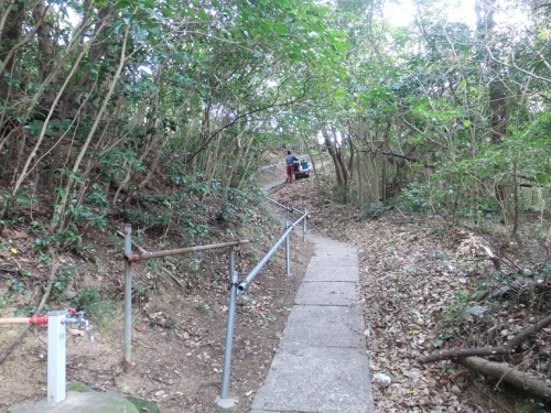 昔から仏様安住の墓地は、【高台の景色の良い処に】と天草では、ほとんどの墓地が見晴らしの良い高台に在り昭和40年代から流行り出した納骨式墓石も先祖代々受け継がれた場所に施工されるようになった。 しかし、約30年ほど前くらいから畑の耕作放棄地が増え墓地の周りは、景観どころか雑木が増え、成長し続けて日も射さない暗い墓地となっているところが多くなってきている。 そんな状況の下、墓誌の追加彫り注文が集中していて三代目と二人で、追加彫りを終えた墓誌を再設置する作業に勤しんだ。運搬路運搬路 運搬機が通る道さえあれば数百メートルの距離も苦にならないけど運搬機を使えない階段だったり、狭い道の場合は担い棒で担いだり担架に乗せて人力で運んだりしなければならない。 このように肉体を使う労働は、最近の寒い日には持って来い防寒着を脱ぎ捨て、上天草市内のあちこちの墓地に6本の追加彫りした墓誌を膝の痛みに耐えながら設置してきた。
