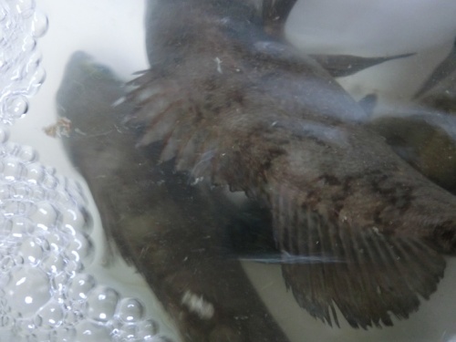 先日、熊本市内にある熊本地域医療センター6FにあるNARU CAFEに天草木目石の作品を設置しに行ったときたまたま地元阿村の友人が同じ病棟の5Fに入院していたので作品の設置が終わってからNARU CAFEでしばらく会ってきた。 その時の会話の中で、「14日(月)にはいったん退院するから祐希(三代目)くんの釣ったメバルを食いたい」とのことだったので早速三代目(息子)は、夜中から朝までルアーフィッシィングに出かけ見事に20cm超えのメバルを二尾と普通サイズを釣って来た。メバル(酸素を送り、活かしているので画像がよく撮れません) そして、三代目が一言・・・「このメバルは、Sさんのために釣って来たんだけん、絶対に食うなよ」折角S君のために釣ったメバルくんたち、どうか明日まで活きていてくれ。誰かのために行動するって素晴らしいことですね。