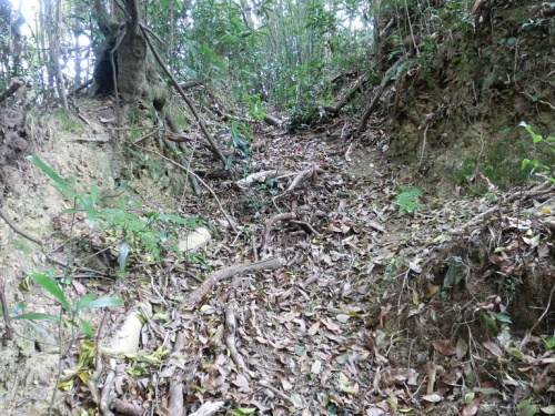 運搬機も、ミニショベルも通らない獣道のような上り坂を約400m最小限の必要用具をリュックに入れて背負ったり、担いだりして誰もお参りすることのない墓地で改葬(墓掘り)作業をした。約400mの険しい道のり 作業現場(墓地)にやっとの思いでたどり着くも雑木に覆われ、ここ数年お参りされていないことを物語っていた。荒れ果てた墓地 墓地の改葬を依頼された方も、先祖の墓地を探すのに苦労されていてやっとこの場所にご先祖さまの御霊が眠っておられることを探し当てられ「このままの状態ではいけないから、改葬してお寺に移す」とのことだった。 急激に過疎化と少子化が進む天草では、このような現象が多く昔は高台で景色も良かっただろう場所が、雑林に覆われ藪化していて最悪の状況となってしまい、無縁仏の数も多くなってきている。
