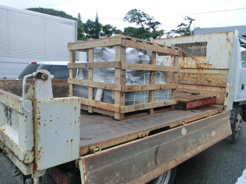 朝から昨日加工した天草木目石の梱包をして近くの商店からクロネコヤマト便で発送してもらったが何と重量が19.9kg20kgを超えると送料が高くなるので新潟県長岡市の依頼して下さった方の負担を少し軽減できた。 次に、木枠で梱包した1トンの石材製品を久留米運送会社まで持ち込み大阪府堺市の石材店に月曜日に届くように依頼してきたがこの木枠梱包と、運送会社への持ち込みによって送料が約半分となりこれまたお客様の負担を大きく削減することができた。運送会社に持ち込んだ1トンの石製品 我が工場で加工した石材製品が、天草新潟 天草大阪と二日もあれば自宅や会社へ運んでもらえる現代物流社会の発展を改めて感じた。 便利と言えば、この前まで約2か月間にわたり現場で大活躍してくれた我が家の助っ人【ユンボーくん】、足回りなどに土がこびりついていたので日頃の活躍をねぎらって、高圧洗浄機で洗車した。感謝の気持ちを込めて洗車このユンボーくんが人間だったら、一杯呑ませてやるんだけどなぁ~。