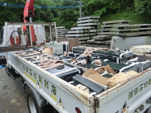 梅雨入り宣言はあったものの、今年の梅雨入りのはじめは天候に恵まれ予定していた作業が工程通り(予想外)に進んでいて昨日3トン車満載にした石材製品の組み立て作業も順調に捗った。施工作業 何といっても、トラック横付けの現場で、小運搬作業がないので捗るが熊本地震後、余震も継続しているので、接着ボンドの使用量が増え今まで以上に天災(地震・台風)に対する頑丈な施工を実施している。 帰工後、明日施工分の石材製品のトラック積み込みを済ませたが明日も天候に恵まれますように・・・てるてる坊主さま