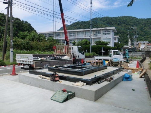 朝から墓誌の追加彫りなどの件で上天草市内を動き回り今日いちばんのメイン作業としていたメン砂利の敷き込みは身体も疲れて来たころの15時からとなった。 しかし、メン砂利の運搬を大型ダンプをチャーターして一回の運搬で7立米を現場に運んでもらったので後は、ユンボーと手作業で砂利の均し作業まで終えることが出来た。大型ダンプで運んだメン砂利7立米敷き込み終了 これで6月30日が締め切りの一連の作業が余裕で終わったけど4月26日から取り組んだ作業は、本当に中身があり充実していてこれまで梅雨入り後も降雨が少なかったことが幸いしている。 そして今後は、熊本地震の余震も治まりつつあったので「被害墓石の修復作業に取り掛かろうかな」・・・と思った矢先、今夜もまた日奈久断層帯の北側を震源とする地震が発生してしまった。今夜の地震 先日、植木町で倒壊した自然石灯篭の復旧作業をしたばかりなので今夜の揺れでまた倒壊していないか心配です。だから、「熊本地震被災の墓石、いつ修復するの」と言われてもこればかりは、「今でしょ」って訳には行きませんね