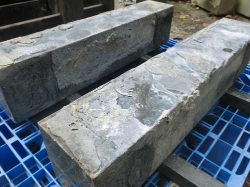 最近の作業は、天気予報によって工程を考えながらやっていて今日は、朝から雨がしょぼしょぼと降っていたので一昨日解体し、工場に持ち込んだ墓石のクリーニング作業に取り組み苔はもちろん、接着面にコンクリートの塊や接着ボンドが残っていたので金箔を貼り直す部材を最優先してクリーニング作業を行った。石碑の下段部材薬液で苔落とし(ダンプの荷台が作業場)苔を落とした後、高圧洗浄 とりあえず、金箔の張り替えをしなければならない部材から手掛け一気に片付けてしまいたいところだけど、明日は貴重な晴れ予報なので熊本市の北にある植木町まで地震被害に遭った墓石の修復作業に行く予定。 今回の地震によって多くの墓石が被害を受けているけどその修復作業の優先順番は、墓石などが倒壊し、墓地の通路を塞いでいる状況にある場合、通路の安全確保のため基本的にその倒壊した墓石の移動作業のみを行います。また、墓石などが倒壊し隣接する墓石に被害を与えている場合は隣接する墓石の復旧作業の妨げとなるため、倒壊した石材を取り除きます。 明日の修復現場は、メールによる画像を観ただけで下見にも行っていないけど、隣接する墓石に被害を与えているようなので必要と思われる機材・資材を状況予測をして準備した。