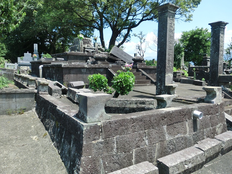 熊本市の熊本城や藤崎台県営野球場が遠くに見える現場に熊本地震被災墓石の復旧作業に行ったが、熊本市の今日の最高気温は34.8度で石に囲まれた現場は、暑いというよりも息苦しくて身体からは、汗が噴き出してくる厳しい状態だった。墓所からの風景 被災した墓所は広くて、カートクレーンも一カ所でのセッティングでは届かずとても狭い通路を四苦八苦して通し、前と後ろから復旧の作業を行った。前から施工後ろから施工 疲れた・・・。PS・・・楽天ブログの書き込み様式が変わって、扱いにくくなってしまった。