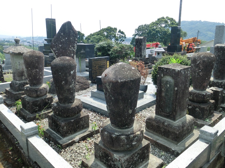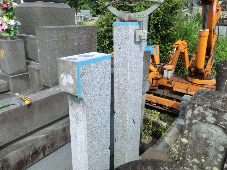 熊本市の地震被害墓石復旧作業六日目の今日、二基の墓石の修復を終えた。