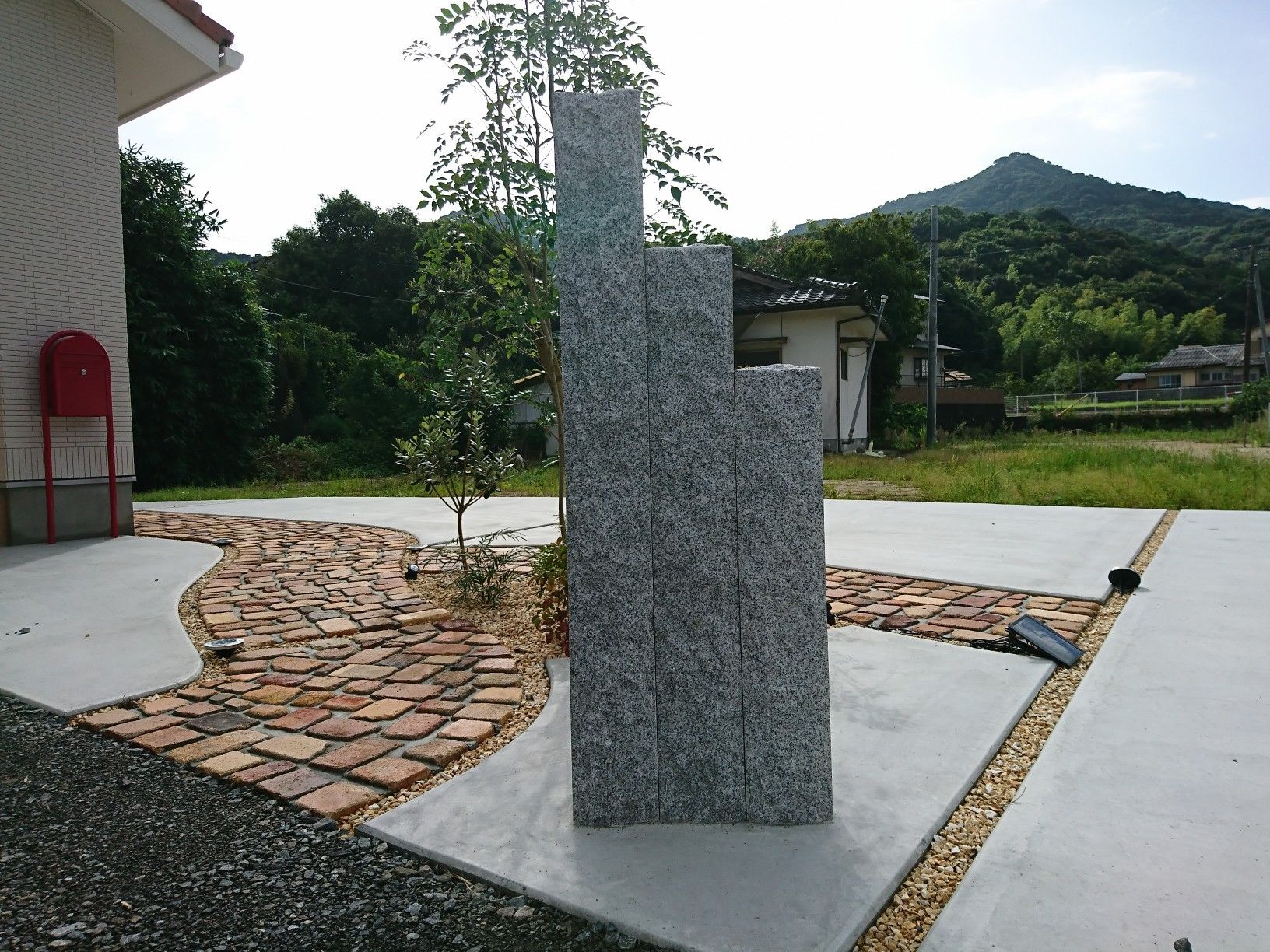 玄関までのアプローチに、標石柱を施工したが、左官工事も終わり、中々良い感じに仕上がっていた。