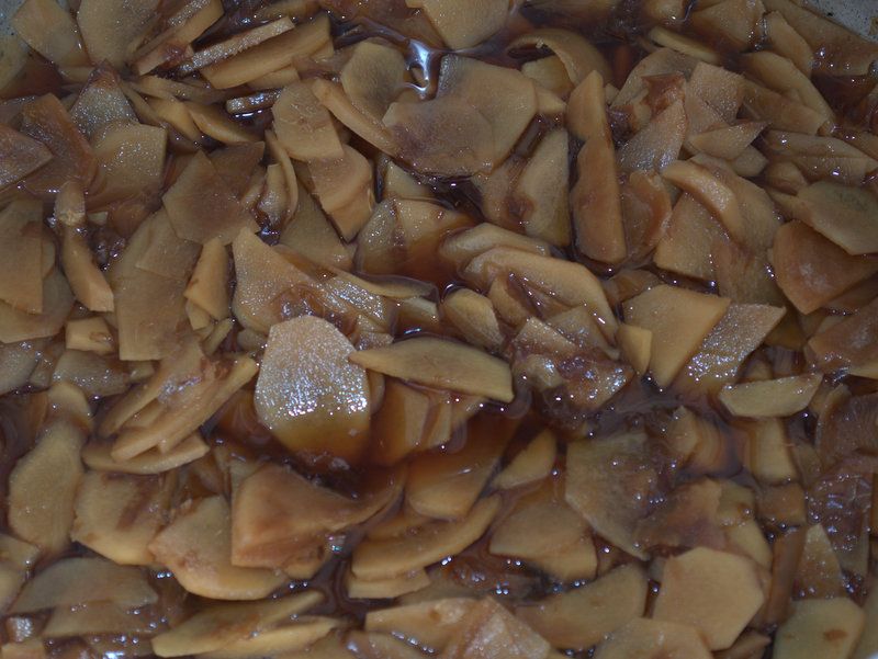 その後、三温糖、お酒、しょうゆそして水を入れてコトコト煮ます。