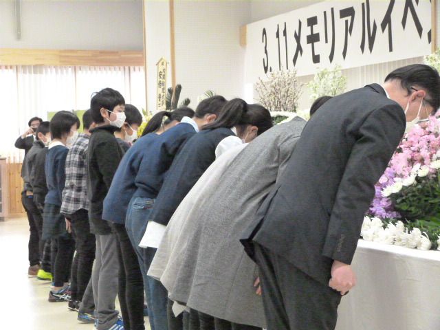 地震発生時刻の14:46分に合わせて黙とうを捧げました。