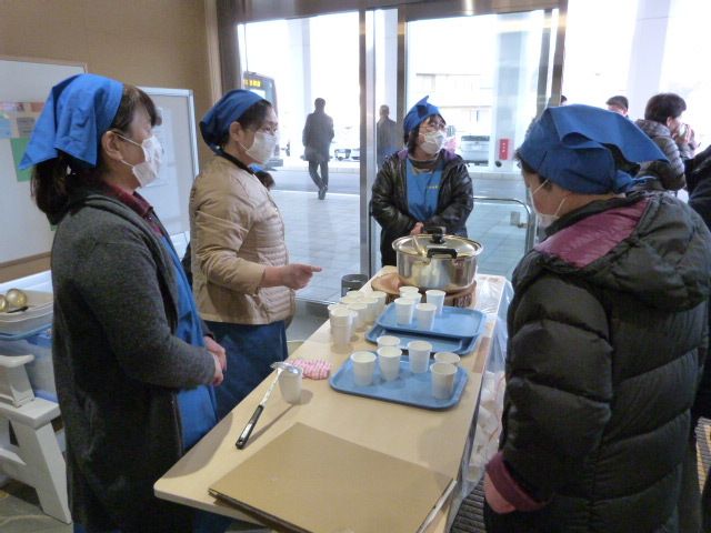 会場入り口では、ホット牛乳と甘酒のおふるまいがありました。