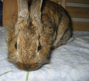 うちのうさぎはライオンラビットの1歳です。 名前はミミ ♀ です。よろしくね!!ミミの爪切りをしたら、服にたくさんの抜け毛がついていました。お尻のあたりの毛が抜け替わっているようです。これから背中に地図ができるのかなぁ?さむ~い!!毎日が続いているはずなのに、私と一緒にストーブの近くにいるから(?)でも、確か夏毛の抜け替わりの時も、?って思う時期だったような・・・・。ちなみに、爪切りは一ヶ月に1回してますが、ミミは良い子なので、簡単です。初めて切った時は、私も戸惑っていたせいかうさぎキックされましたが、3回目くらいからは静かにしてます。コツは、普段行かない部屋に連れて行き、毅然とした態度でやる事です。体勢は抱っこしたままの体制の方がいいようです。切り終わったら、よく誉めて好物をあげます。