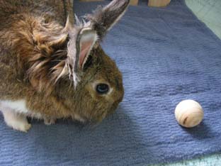 私ねっ、新しい芸を取得したの 今度の芸は、道具を使うんだよ!! ウッドボールはっ あらら、転がしちゃったぁ~ ねぇ、ボールとって!! それじゃ~、やりますか? はい!いきま~す “なぁ~んだ、ただ頭に乗せてるだけじゃない”って思ってるでしょ でも、違うのよねぇ~ 私は “ 森の姫よ! ” (それと“森の姫”は関係あるのか?) クリック うまく出来たでしょ うさミミは、また1つ特技が増えました