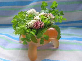 梅雨ですね!雨が降ると、なんだか眠くなりませんか?(私だけ?) 日曜の朝、まったりと過ごしていたら、 カメさんがステキな贈り物を持ってやって来ました。 ハーブとお花のリースです ミミおいで!カメさんがプレゼント持って来たよ うわぁ~キレイなリースだね なるほど、これは・・・ カメさんとお話中です あのねっ、これは私サイズで作ってもらったんだって! 早く頭に乗せてみて はい、動かないでね 似合う? 森の姫モードです んっ このリースなんだかいい匂いがする!? これは、もしかして イタリアンパセリ・サラダバーネットetc・・・ さすが!!食べ物には・・・ これ全部食べられるよ 良かったね!でも、キレイだから少し飾っておきましょう 今、食べる! 私の 物 食べ物でしょ それはそうだけど・・・ 見た目良し! 香り良し! 美味し~い ちょっとぉ~、うさぎさ~ん この後、このリースは跡形もなくなりました(^^;) 姫モードはどこに・・・ 色気より食い気の(?)うさミミです