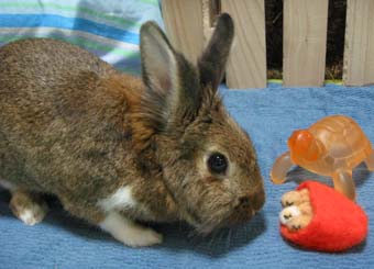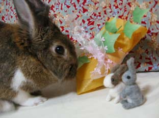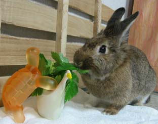 ミミとパンダ今日の帰りは午前様(^^;) うさミミさんは、お怒りモード 遅いよ! 私、トイレ我慢して待ってたんだけど うさミミは、私が外出以外は放し飼いで、いつもは外のトイレを使ってます。 トイレはケージにもありますが、我慢の出来るかぎり中のトイレは使わないのです。 ごめんね!早く帰るはずだっんだけど・・・ 今日は食べ物では、だまされないよ (硬い意志のようです?) そうですかぁ~!せっかく柳取って来たのに、残念ね!! えっ、柳!? 早くちょうだい クリック (強引に取られました) 美味しい (今日も、お鼻がハートに) 美味しすぎ クリック この食べっぷり・・・ うさミミさ~ん!食べ物には騙されないって、言ってましたよね!! 柳は、別腹なのよっ! あぁ~満足 あの~~別腹って、そうゆう意味じゃないんですけど・・・・ 大好きな柳に、すっかりご機嫌のうさミミです