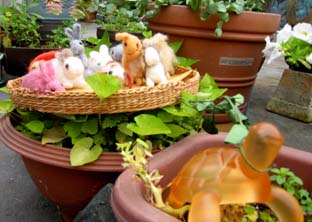 町のうさぎさん達がベランダツアーに ハーブがたくさん!お花も咲いてるんだね!! 向こうから、森の姫の姿が あっ!姫だ!! プライベートのようなので、そっとしておく事に さっきから、誰かに見られてる気がするのよねぇ~ んっ カメさん何してるの? 町のみんなも一緒なんだ!? カメさん遅いから、私も手伝うよ! 姫そんな事しなくても・・・ 町のうさぎさんは、ちょっぴり恐縮しています そこにはねっ、私のお友達のスズメさんが毎日来るんだよ! いつの間に友達になったんですか? うさぎさん達は、一通りベランダを楽しんだようです 姫、今日は楽しかったです! ありがとうございました 皆さ~んまた来てね~ あぁ~お腹すいちゃった!!ハーブでも食べよう ハーブの摘み食いも、ゴロ寝も我慢して 町のみんなをもてなした、うさミミでした