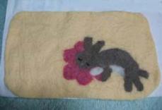 うさミミは、秘密(?)のMP工房ヒツジ部門を見てしまった! あれは、何だろう? 羊 毛 あれっ、ミミとパンダだ!何してるのかな? ちぎって並べた羊毛 (これに洗剤の入った温水をかけて、擦ってフェルト化していきます) うさミミに見つかってしまったので、お部屋で仕上げする事に 何作ってるのかな? フムフム なるほど!これかぁ~ MP工房って、ミミとパンダが働いていたんだね 何作ってるか知りたい!? でも、プレゼントだからなんだって MP工房の一部を見てしまった うさミミでした 見られたの、姫の洋服作ってるところじゃなくて良かった(^^)