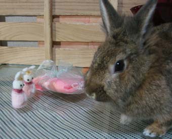 あのねっ!今日ミミとパンダはねっ お仕事で、手に何箇所か小さな切り傷をつくって痛いんだって! 傷は、どうなの? 細~いワイヤーで切ったから、ちょっとだけ痛いかな!? 見せて? は い なるほど!!何で、こんなに切ったの? あんまり気にしなかったし、急いでたのよ! そうかぁ~!?次からは気をつけてくださいね そうだねっ(^^;) おぉ~、飼い主思いって思っていたら・・・ ところで、今日の仕事って何してたの? 先週作っていた、これを飾って来たんだよ そうなんだぁ~! ミミとパンダもちゃんと、仕事してるんだねっ 失礼なぁ・・・ 手を心配してくれる うさミミでした そうそう、ここだけの話なんだけど、 ミミとパンダったら 今朝、財布忘れて出かけ戻ってきたんだよ~ コラッ
