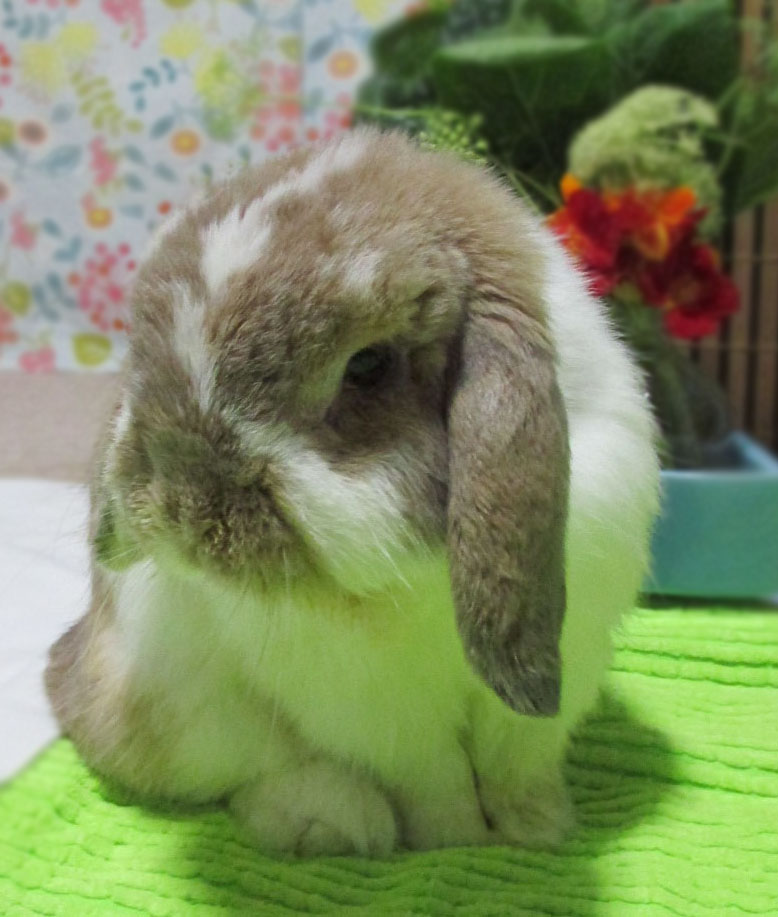お風呂に入って、キレイになって動物病院へ待合室では、もちろん抱っこうさぎ今日も話しかけられちゃいました~隣に座っていた方、何も連れていなかったんですがピノをナデナデしてくれたので、“ウサ飼さんですか?”と聞くとそうでした。爪切りにきていたようで、先に切ってもらっていたようです。待っている間にいろいろ話したんですが、やはり抱っこが嫌・・・落ち着きがないなど言ってました。反隣に座っていた方にも話しかけられたんですが、ワンコ飼いの方でうさぎってこんなに懐くものなんですね~♪こんなんだったら飼いたいわ!?みたいな事言っていました。念のため“個体によって違いますが、懐きますよ!この子は特別かもしれませんが・・・”と付け加えておきました。診察室でも、研修に来た未来の獣医さんが見学してましたが、先生待ちでミミとパンダにマッサージされているピノノワールさんを見て。気持ちよさそうにしてますね~とで、ミミとパンダはこの子マッサージモデルなんで~まだ本格デビューしていないので半分冗談半分本当・・・そんなこんなで、診察は前歯のカットのみそれ以外は問題なし診察が終わって会計待ちそしていたら、最初に話しかけてくれた方が、うちの子ですとキャリーからだして見せてくれました。2歳のオレンジのネザー男の子、まつ毛長くて可愛い~飼い主さんが“男の子なんだからピノのように堂々と膝に居なさい!”って言われて膝にあげられたもののキョロキョロしたりホリホリしたり落ち着かない様子。ミミとパンダ試に抱っこさせてもらいました。一瞬キョロっとしたんですが、あ~ら不思議こんにちはとあいさつして、普通に2回撫でただけで、落ち着く落ち着く~飼い主さんあれれっ????って感じでした。“こっやって撫でるといいですよ~”とストローク変えて撫でたらミミとパンダの腕に凭れかかりトロ~ンお礼に手を舐めてくれましたよ。飼い主さん“え・・・”さらに驚いてました。普段は舐めない子みたいです。そこまでリラックスされて、ミミとパンダの方がびっくり(笑)やっぱりミミとパンダ何かあるのかなぁ?撫でながら言葉には出していませんが会話はしてましたが~会計待ちの時は、ピノノワールさんはいつもキャリー中なのでこの出来事はしりません。内緒ですこんな感じでリラックスしてましたこれはピノノワールさんですが