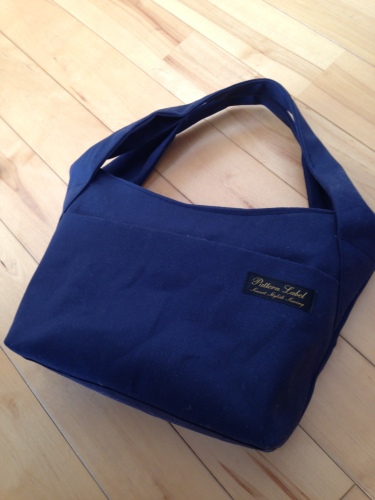 型紙 パターンレーベル トートショルダーS布地 銀河工房 11号帆布 ネイビーフラップショルダーで勢いにのったので、眠らせていた型紙に挑戦してみました。シンプルにネイビー一色で作りました。内布は枕2で使用したshinzi Katohのキャンバス。最初、花柄のブロードを内布で裁断していましたが、またもや迷いに迷って、厚みのある布にしたくて、キャンバスに変えました。難しかったところは、天口ファスナーです。落ち着いて縫えばいいのに、焦って間違えて時間かかりました。完成すると、ファスナーのチャームがきらりと光って、かっこよいです。とくに、斜めのショルダーひもがしびれます。