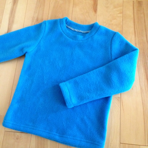 型紙 パターンレーベル キッズT 100布地 銀河工房 アンチピリングフリース ターコイズ前回作ったタートルのあまり布で、何か縫えないかと型紙をあてると、キッズT100がはまりました。次女はサイズアウトしているので、甥っ子に。布が足りず、タートルにはできませんでした。残念。