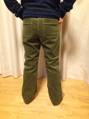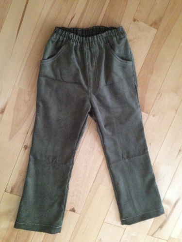 型紙 パターンレーベル セミワイドパンツ140布地 C&S コーデュロイ モスグリーン急に寒くなってきたので、着る服が足りないです。急いでパンツを縫いました。500円/mの布です。肉厚なので「あたたかいパンツ」と呼ばれています。直線、ロックミシンともに、針を14番に替え、糸は30番で縫いました。(以前同じ布の色違いで、何本も針を折った経験あり)同色の糸を買い足すこともなく、家にあるベージュ30番の糸で縫いました。気をつけたことは、脇にコバステッチをかけるときに、私はしょっちゅうポケットの袋布を、巻き込んで一緒に縫ってしまうので、前パンツに袋布をまち針で固定しておくこと。ゴム通しのとき、出口付近でゴムに逃げられ何度もやり直しさせられたので、ゴム通しにゴムを通したところを、しつけ糸で止めておくことをしました。・・・・・次女の保育園で、劇の練習がはじまりました。なんと長女が年長の時と同じ劇。懐かしい当時のDVDを出してきて、長女と次女と私で久しぶりに鑑賞しました。役くらいは違うものになるといいなぁと勝手に思っていたのですが、最初は違う役を希望していたのに、最終段階で本人の希望で同じ役に。どちらかというと、妹の方が大人で、姉の方が妹に甘えている我が家ですが、こんな場面に出会うと、そうか、姉のこと「憧れ」や「尊敬」の部分もあるのだなぁと思いました。毎日喧嘩したり、一緒に遊んだり。互いに大事な存在なんですね。