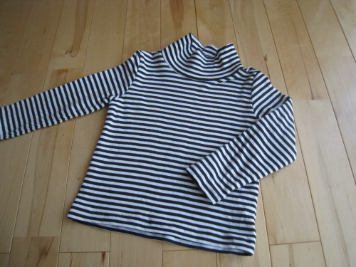 タートルとキッズTを縫った後の、さらにあまり部分をネックウォーマーにしてみました。シンプルに上下折り返しただけの簡単な作りです。もう少し高さがあったほうが、あたたかそうです。