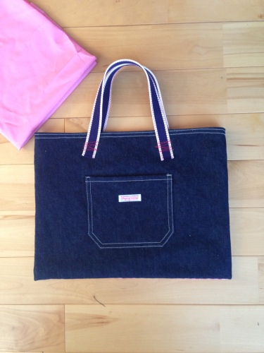 布地 プロート 11.5オンス ムラ糸デニム ・タグ C&Sこのデニム、お値段はりますが、上品な素敵な生地です♪裏地は左上のピンクのシーチング。地元の布屋で購入。