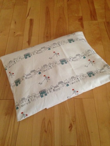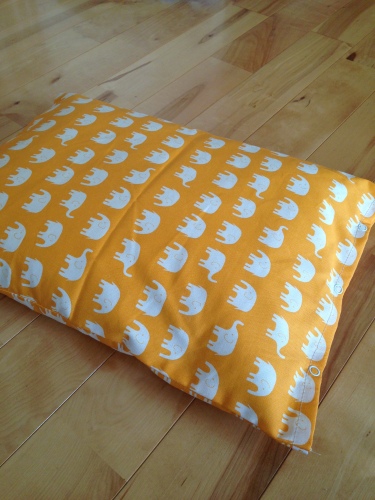 枕を買いました。カバーが本体と同じ値段だったので、なんとなく値段が高い気がして、自分で作ることに。「可愛い布で!」といわれても、山ほどある布の中で、可愛い布・・・あるのだろうか?そして探し当てた、たぶん一番可愛いであろう布。オレンジぞうさん。ぎりぎりの用尺しかなかったので、ぞうさん、横向きです。久しぶりにスナップボタンもつけました。適当に四角く縫っただけなので、簡単でした。・・・・・冷え込んだ昨日、服を探していた長女。もう着れないだろうとしまっていた130の服を「着れる!!」といいはり、試着大会が始まりました。去年より痩せたので、身頃は着れても、なんとなく着丈が短い。「本当に着るの~?」と私がいうと、「だってお母さんの作った服、超着心地がいいもん。買った服はなんか違うんだよね。落ち着かないっていうかさ。」と。私。心の中で「!!!」かなり動揺しました。そうかぁ。そんな風に思ってくれてたんだ。「また、作ってね!」そう言われたら、やっぱり作ってしまうなぁ。じ~んとした夜でした。