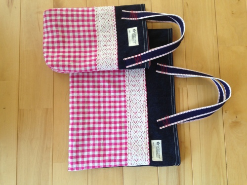 型紙 絵本バッグ 適当 シューズバッグ パターンレーベル 入園セット布地 プロート 11.5オンス ムラ糸デニム ワンウォッシュ Rickrack リネン チェック・レース ダイア先月に作ったもの。何年か前に姪っ子に作ったもの、そこの次女ちゃんにおそろいで。お揃いといっても、サイズは忘れてしまったので、適当です。