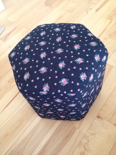 写真の色が悪いです。牛乳パック椅子は、外側のキルトを縫うことより、中身の本体部分を作ることが、本当に大変です。なんせ、必要パック数がすごい。我が家はみんなあまり牛乳を飲まないので、よけいにそう思います。中に詰め物をするのがつらく、終わるころには、手首が腱鞘炎気味に。完成するとうれしくて、また作りたくなったりして。