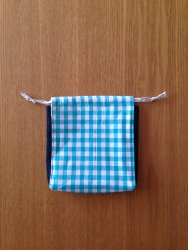 型紙 パターンレーベル 入園・入学セットより コップ袋拡大版布地 C&S ハーフリネン チェック2種類と無地この布、色が優しくて好きです。コップ袋には歯ブラシも入れるので、大きくしました。同じものを2個作りました。お着替え袋と同様、裏側は細かいチェック柄です。