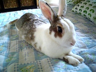 出かけて、帰りが遅くなってしまいました~我が家のうさ達はお腹をすかして、待っていたようで・・ごめんよ~さっそく、うさ達のを用意し、ガッツいてたかと思うと急にゲージの扉をガジガジ攻撃だせ~~~とくに今日は茶々丸がはげしくて、はげしくてゲージから出してあげたとたん・・・きぃ~こうしてやるがじっなにさホリホリして、ズイ~てお布団押して、ガジガジの繰り返し・・布団に敵意むきだし・・ってな具合でして・・(旦那たんが起きないかとヒヤヒヤ)しばらくして、落ち着いたのか・・ブログ更新している茶香を温かく見守ってくれてましたね~遊ぼうよ~もうちょっと、待っててね~つまんね~の淋しかったようです愛いやつです