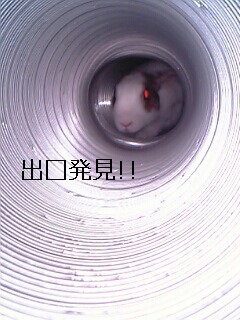 はじめは恐がった茶々丸も、アルミパイプを出たり入ったりできるようになりなんとかにおさめられました~(すごいスピードで出入りするので、ブレて撮るの大変なんです)フラッシュでが光っちゃいました入ったらすごい勢いで出てくるんですあんまり、可愛くありませんがようやく取れた写真でしたそして・・・よかったら、想像してくださいこのまま、バックしてくるお尻を~~間近で見ると最高に可愛いんですお尻がピョコピョコ揺れながら、バックしてくるトコぜひ、想像してみてください(親ばかコメントばかりで、すみません)