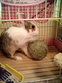 ~うさ飼いさんなら、ほとんどの方がご存知の~りんりんボールワラで出来た丸~いボール齧ったり、投げたり、転がしたりして、遊ぶボールもちろん、茶々丸にも小鉄にも一個づつつい一週間ぐらい前に買ってあげました3日前の写真茶々丸~今回は結構もってるね、りんりんボールこの時、小鉄のも、まだ原型を保ってる状態そして、今日の写真(おトイレ中の小鉄~失礼)3日前から、茶々丸がボールの破壊にラスト・スパート本日、見事に成功しましたそれにしても、いまいち、小鉄はボールに対して興味が薄いらしく、まだ購入時とたいして変わらないのです「小鉄?これ嫌い?前は遊んだのに・・」でもね・・・なぜか、これに興味をしめして・・・・・・茶々丸の破壊したりんりんボールの中に入ってた鈴で遊ぶ小鉄・・・それも、しつこいぐらい投げて転がして、派手に音ならしてなぜ・・・しばらく、買い与えてなかったから・・・別に、いいんだけど・・楽しいんだったら・・でも、なんだか・・不憫「小鉄のりんりんボールの中にも入ってるよぉ~」・・・もうしばらく、小鉄のりんりんボールは用無しのようですそんな時・・・お兄ちゃんは・・・茶々丸は、破壊しちゃったでしょ~