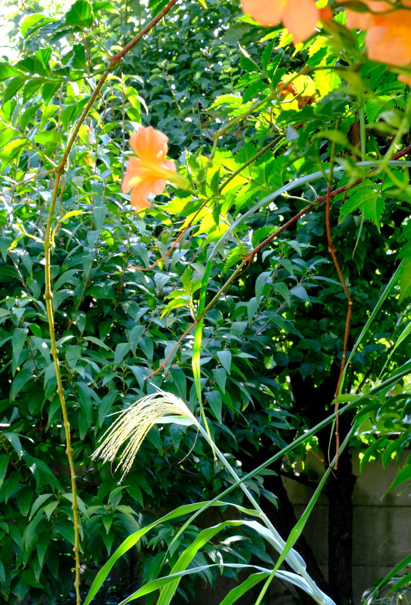 不調が続いていたメインのノートPCがとうとうこわれました。(6年前に購入)すぐに修理に出してみようと思います。今は、サブのノートPC(3年前に購入)を使うことにしましたが、いろいろと不便です。そろそろ危ないとは思っていたので、写真や大切なものは外付けハードディスクに入れてありました。しかし、少し小さめのPC(15、6型かな?)なので、とても使いづらいのです。故障した方はとても大きいので写真を見るのもキーボードを打つのも使いやすかったのです。庭の夏と秋が共存している感じ。( ^)o(^ )ノウゼンカズラって、一度休止して、また咲き出すのですが今年はこんなへんてこ集団もありました。('◇')ゞススキもあまりひらいていないものだいぶ開いてきたものも。9月2日の一輪。そして台風一過の9月5日の朝は、ノウゼンカズラもススキもみんな深く深くお辞儀をしてしまいました。いまだに戻りません。せっかく咲き始めたシュウメイギクもよくないです。いやー、なれないPCだと時間がかかりますね。キーボードもよく見えないし。('◇')ゞ