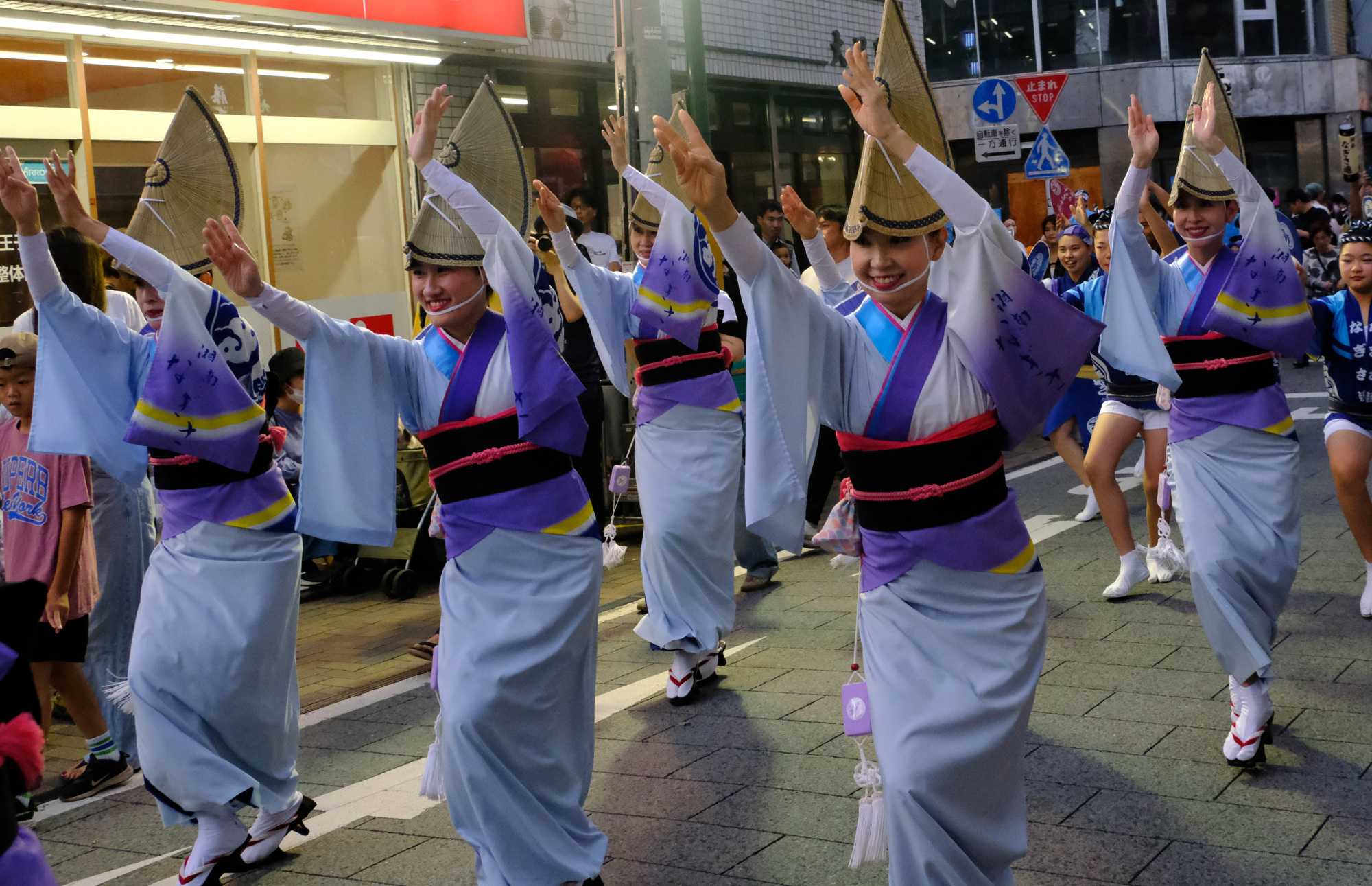 前回からの続きです。阿波踊りは鳴り物の音に反応して、自然とテンションが高くなります。(#^^#)さて、今度は飛鳥連がやってきました。この連は以前から何度も見ています。ちびっこたちが、とにかく上手。(#^^#)男踊りもうまい。表情もにこやかで素敵でした。女踊りもやってきました。ここからは場所を移動して。広いところですが入る隙間がなかなかなくて苦労しました。あたりが暗くなるにつけシャッタースピードがどんどん遅くなります。それと、一部、ライトがあるので逆光になりやすいです。狭い道で最初に見た湘南なぎさ連をここでも見ました。女踊りです。女踊りの後ろ姿。男踊りです。男踊りの後ろに女踊りが。場所が広いので、男踊りの見せ場が。思う存分動き回れます。鳴り物のリズムがどんどん速くなります。そして、このあとは・・・。高い高いジャンプ、見事でした!\(^o^)/(つづく)