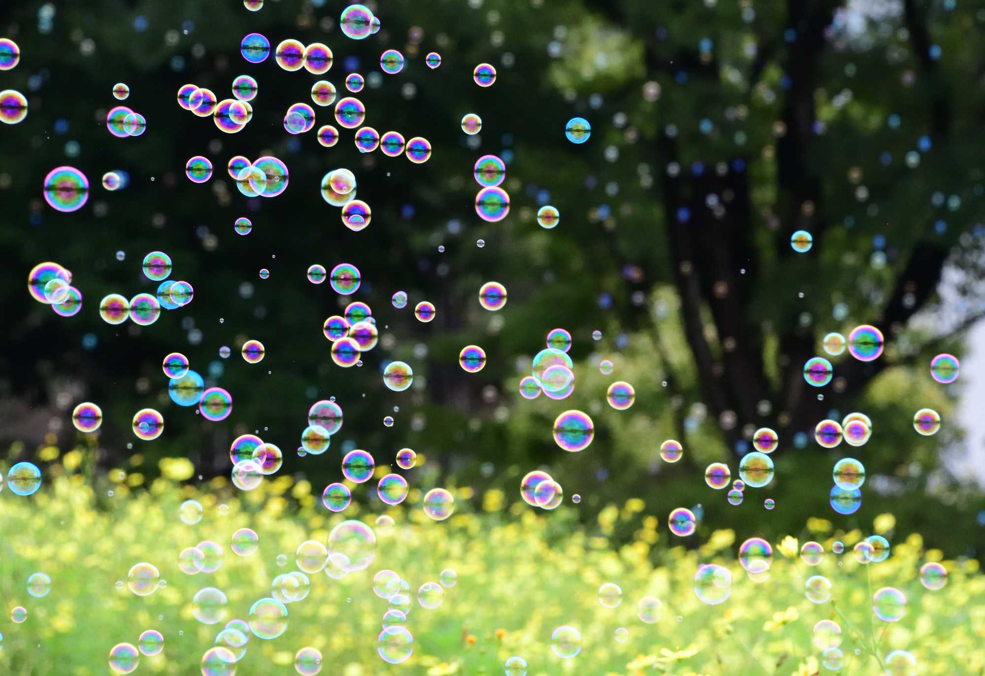 昭和記念公園の花の丘は、今年は黄色一色。キバナコスモスのレモンブライトが植えられています。その話は9月11日のこのブログでアップしました。今年はどうかな?と思っていましたが、酷暑、雨風にも負けずにそれなりにきれいなままのレモンブライトでした。そこにシャボン玉が飛びます。シャボン玉が飛ぶ前のレモンブライトを。わんちゃんもシャボン玉を楽しみにやって来たのでしょうか。('◇')ゞ飛びました。しかし、これがむずかしいのなんのって。この日は風がとても強くて、シャボン玉がどちらの方向に飛ぶのかわからず。また、あっという間に風に流されていなくなる。( ;∀;)飛ぶ場所も分からないうえ、ピントが合いにくい。シャボン玉になんとかピントを合わせましたが、レモンブライトはバックコーラスのような役目に。スマホで撮る人が多かったです。スマホだとあれこれ考えずにシャボン玉が撮れるようです。('◇')ゞちょうどパークトレインが来ました。一部、オレンジのキバナコスモスもありました。(つづく)