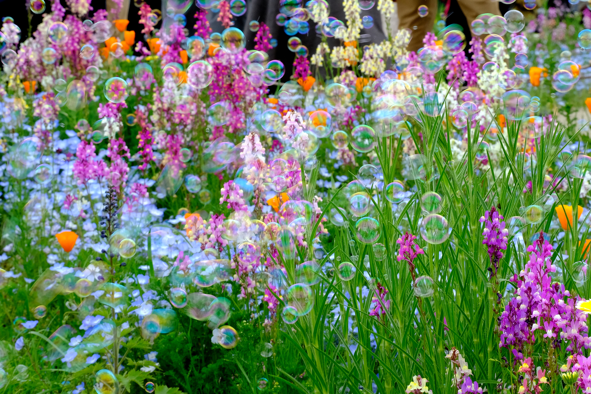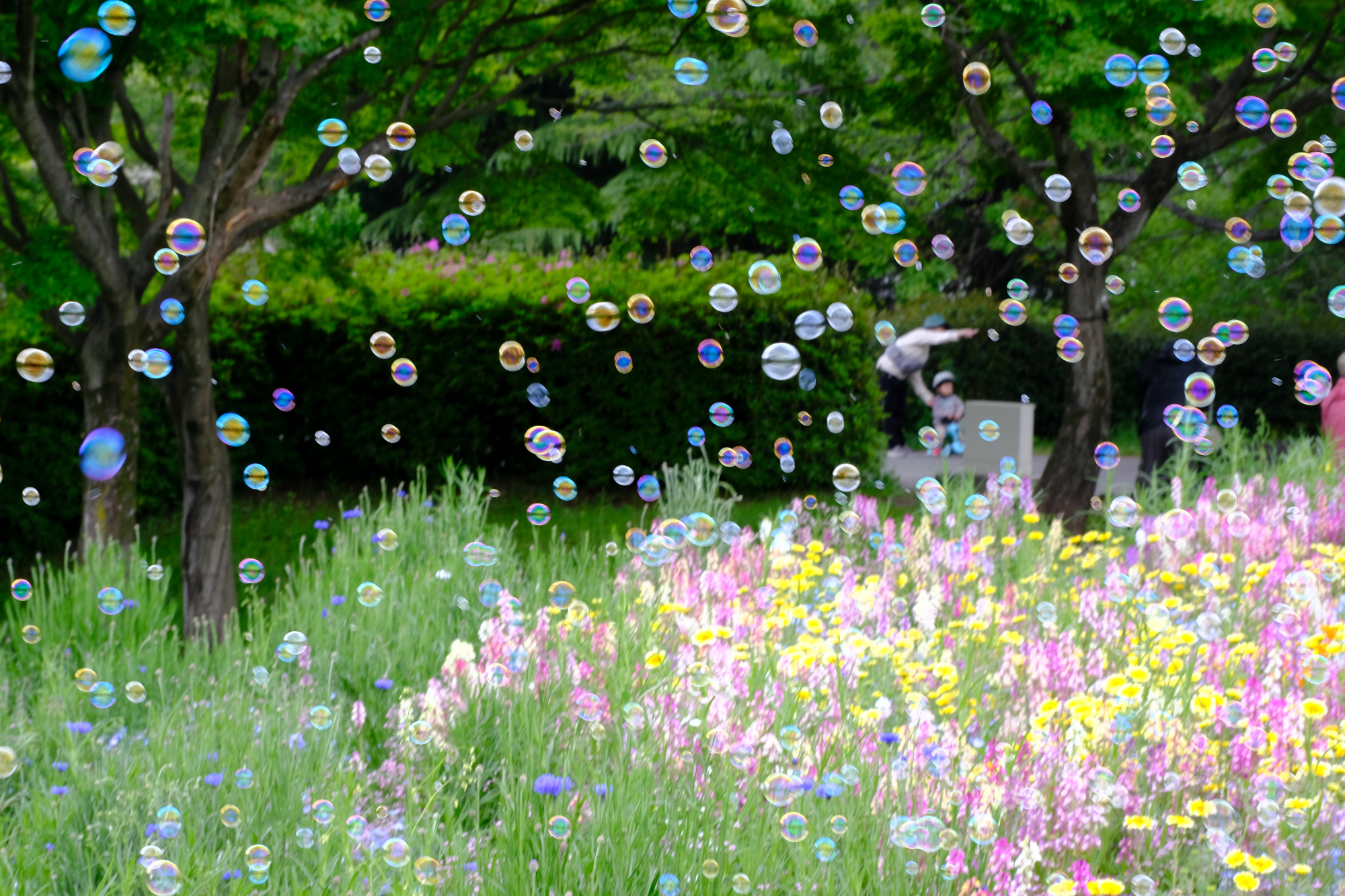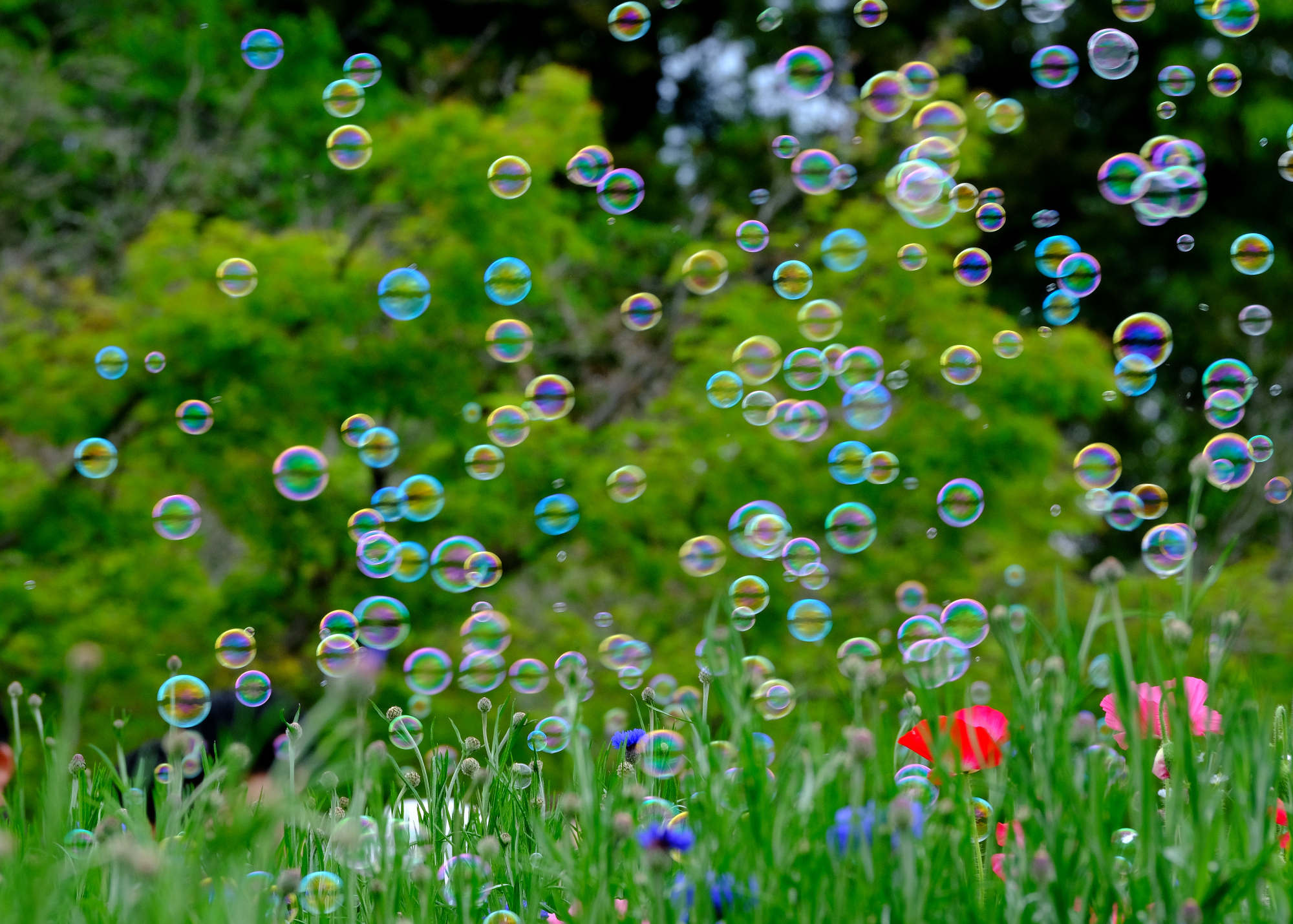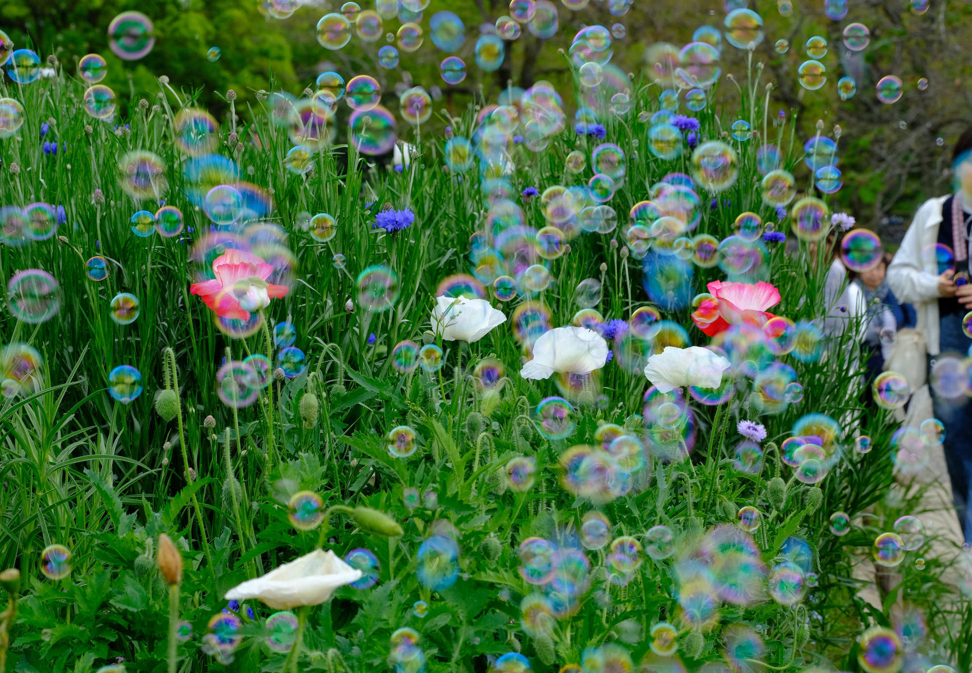 去年も感じましたが、特に青い色のネモフィラバックになるとシャボン玉は全然目立たなくなります。