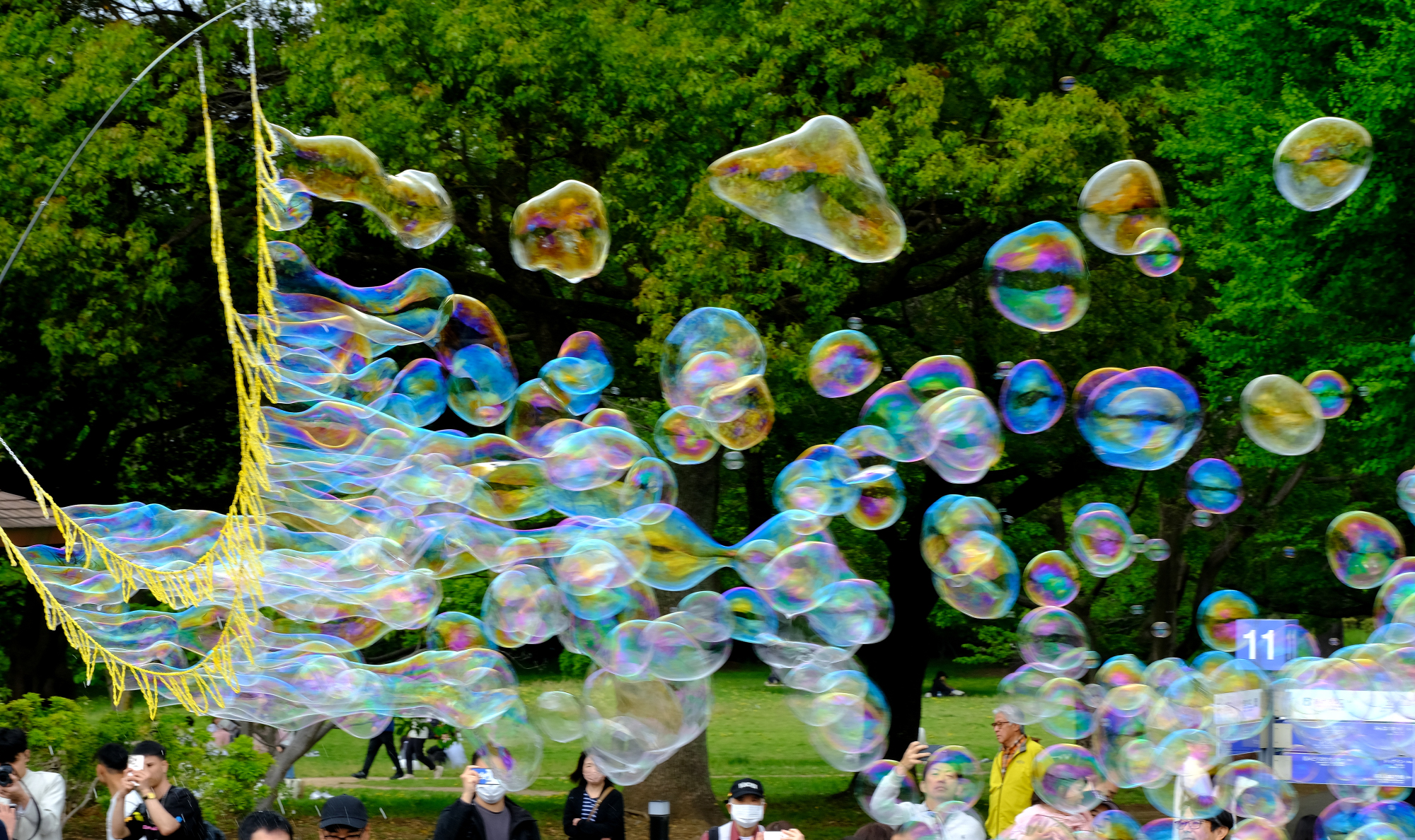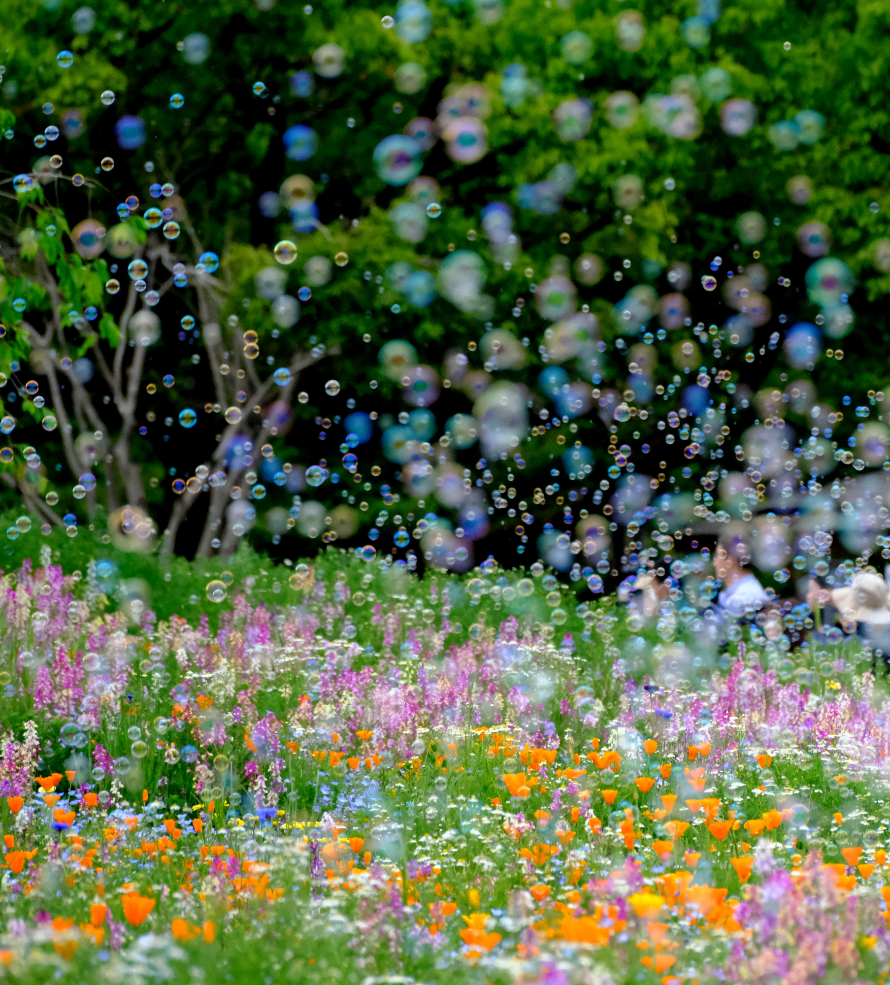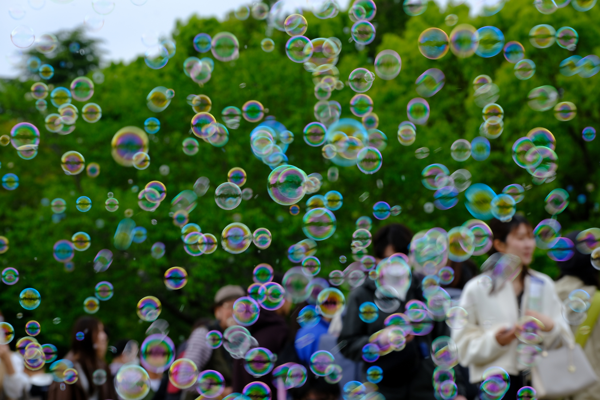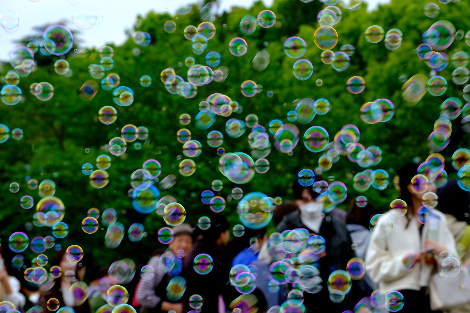 去年も感じましたが、特に青い色のネモフィラバックになるとシャボン玉は全然目立たなくなります。