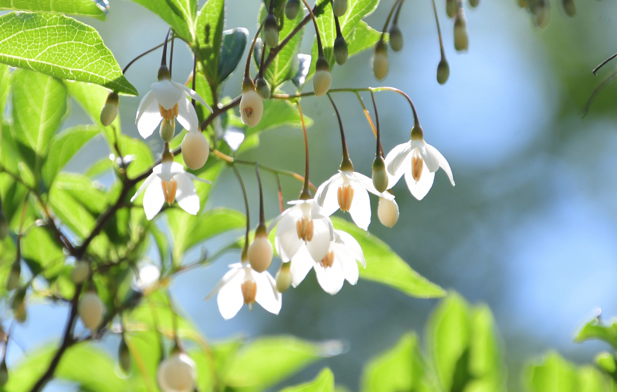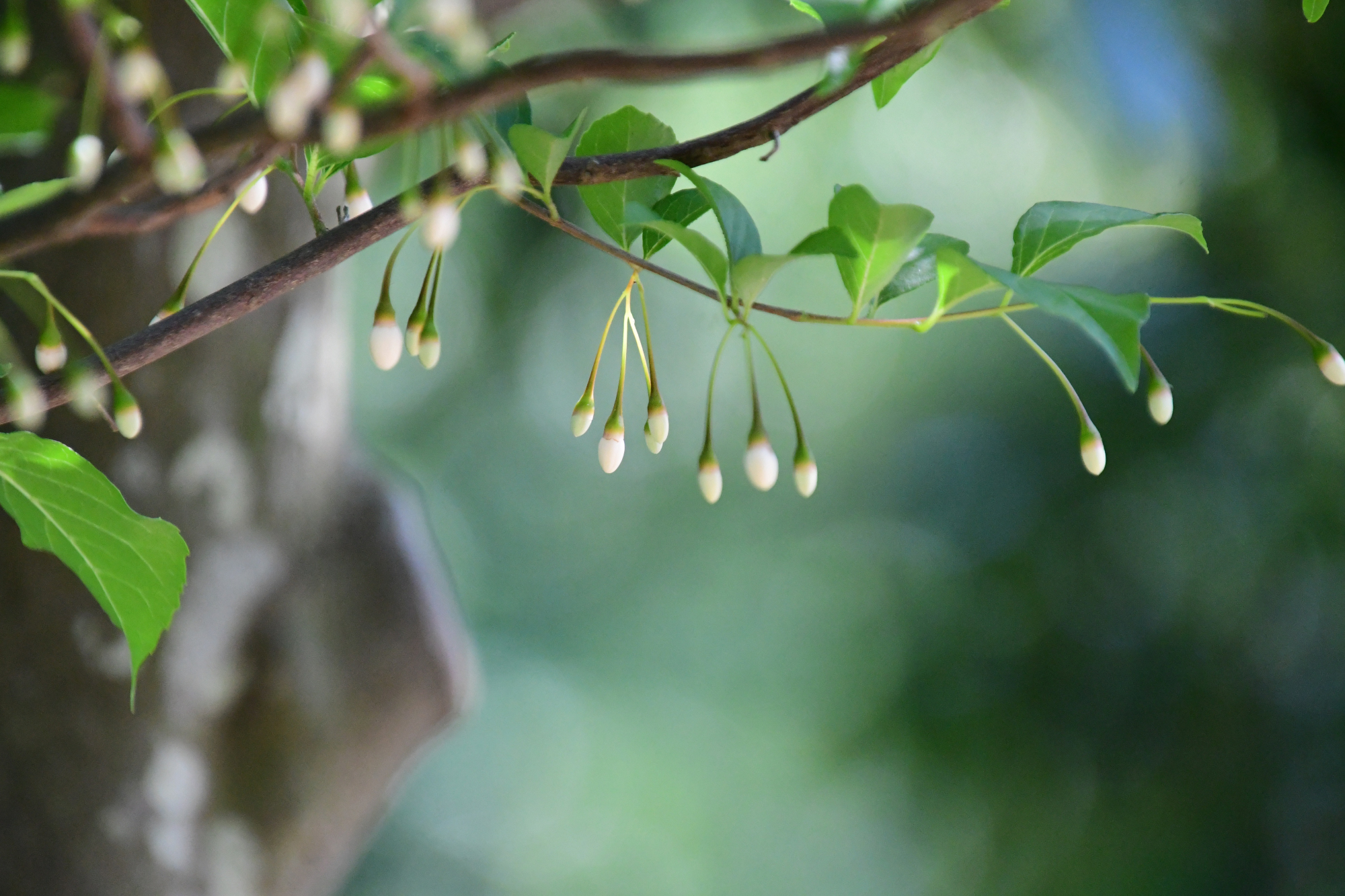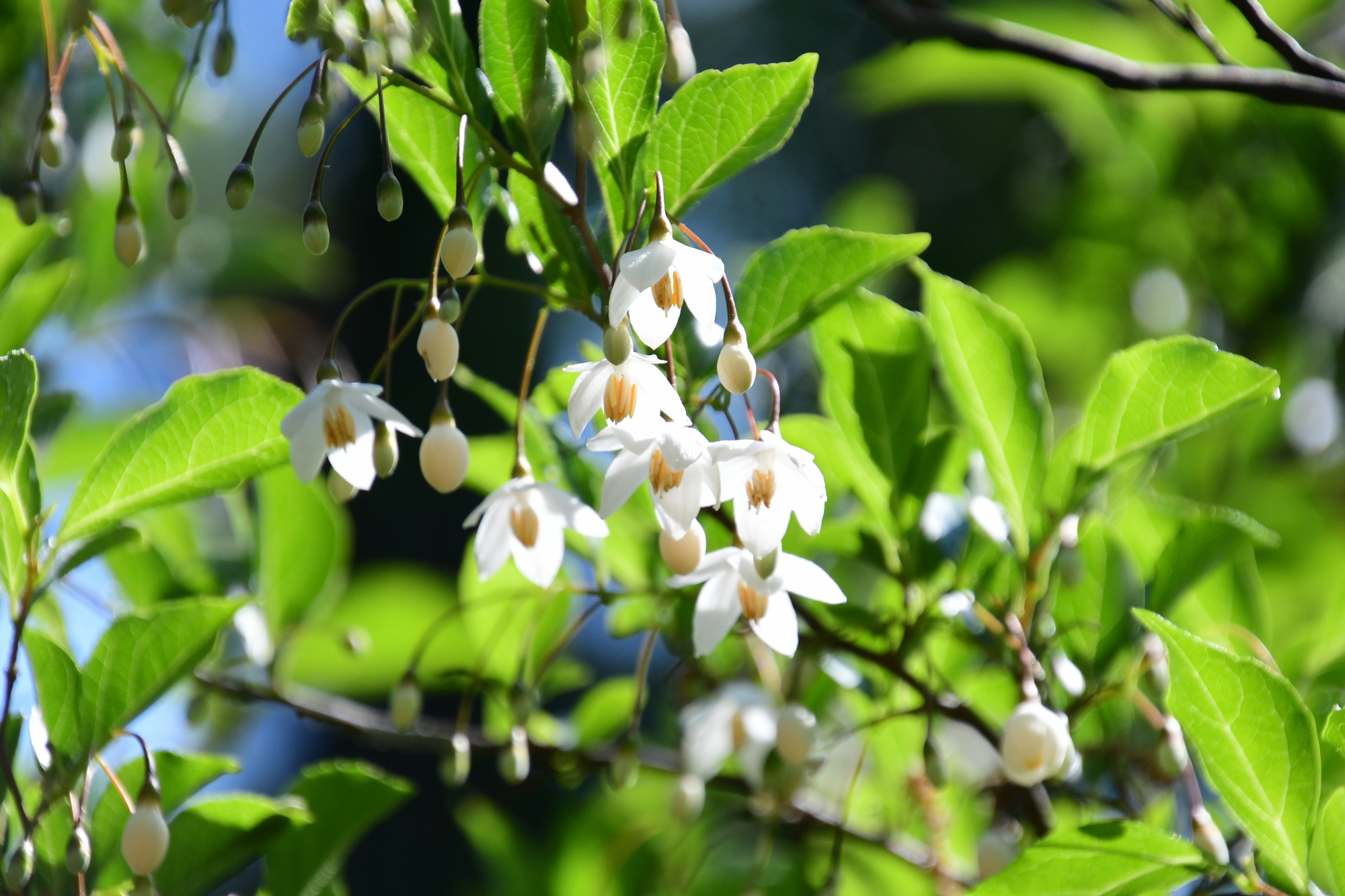 ハクウンボクよりも花柄が長く、ぶら下がるような感じがします。