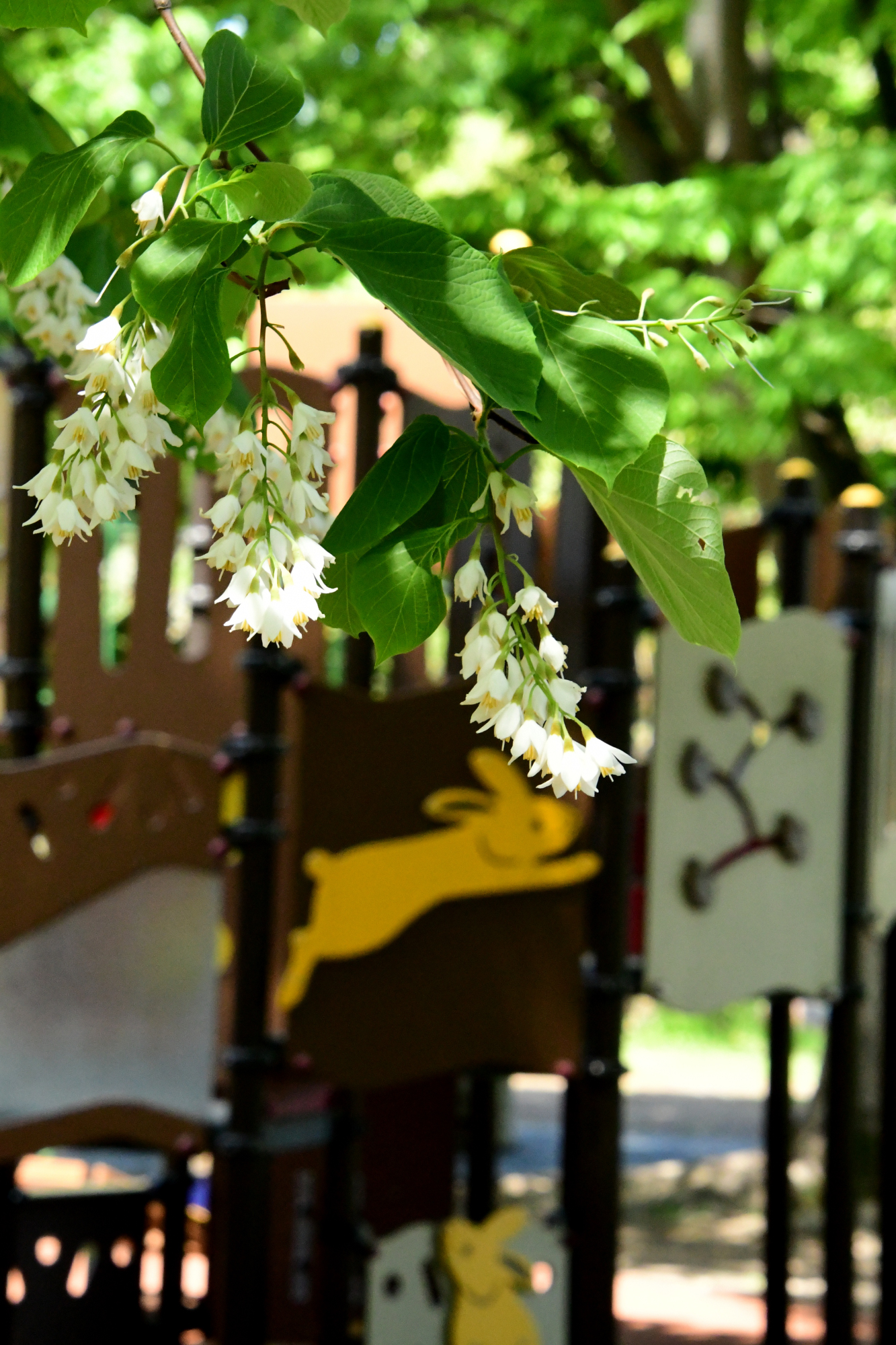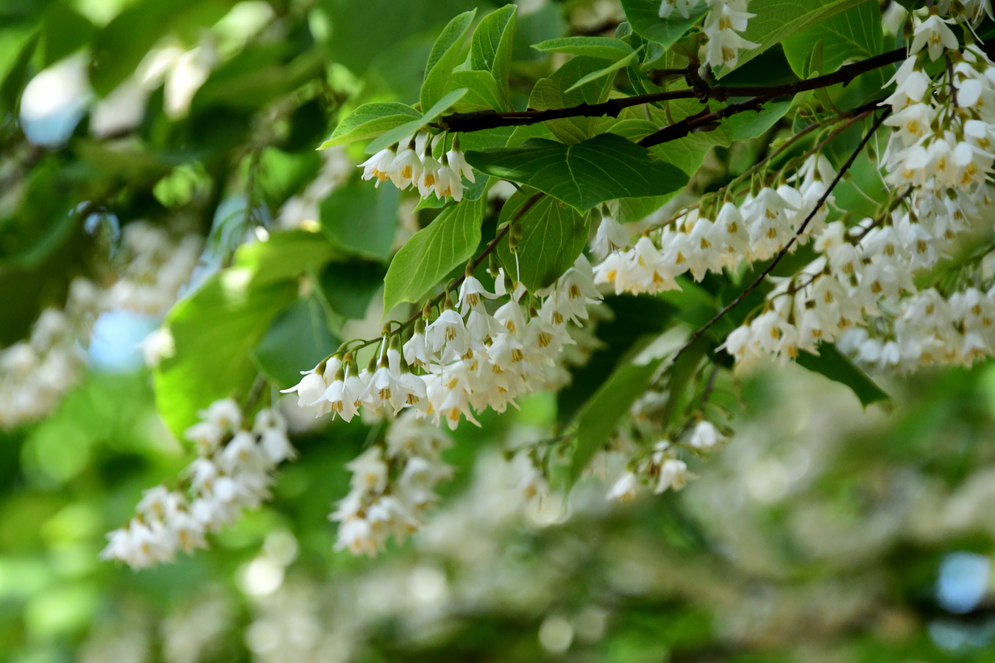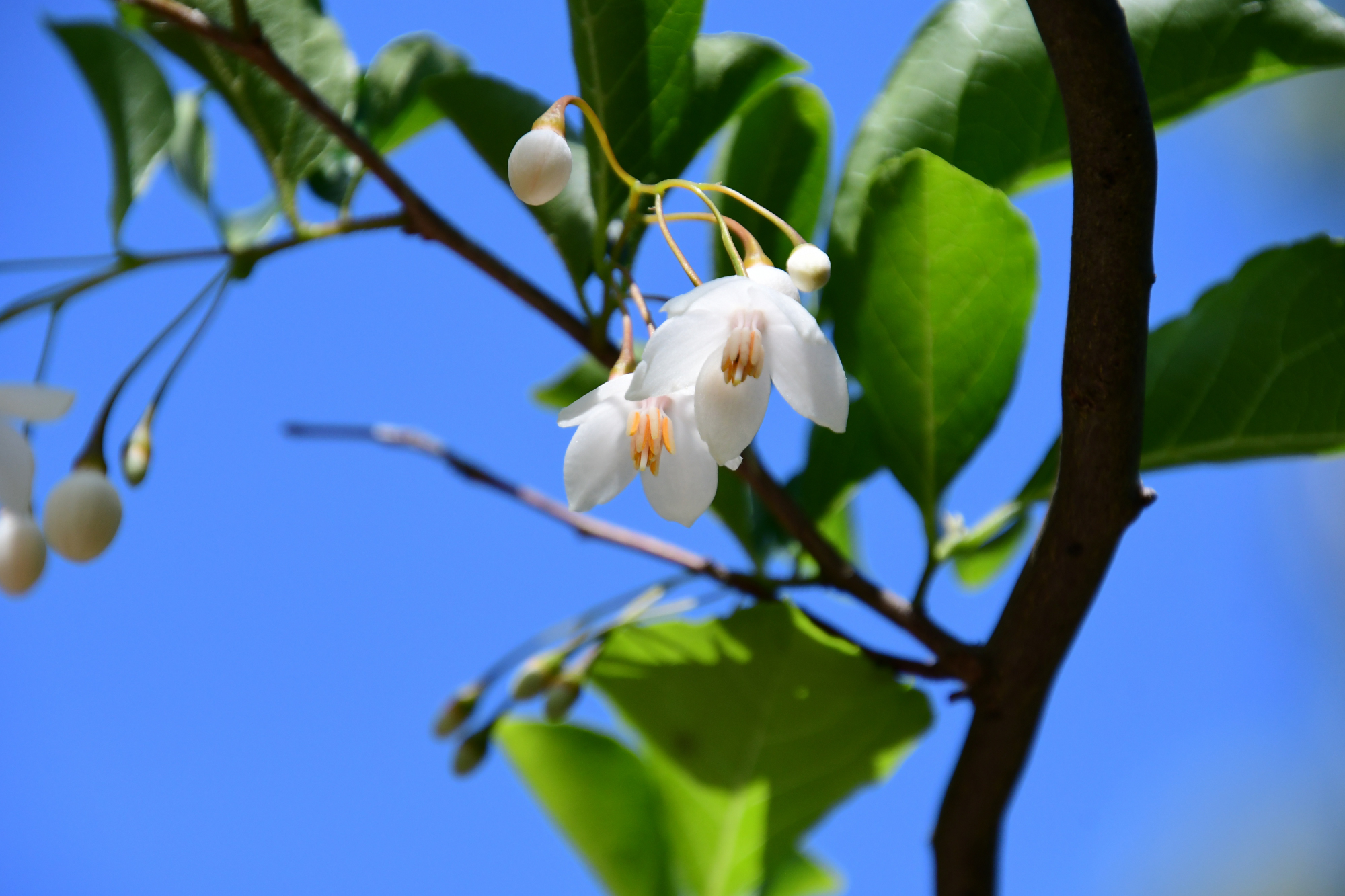 ハクウンボクよりも花柄が長く、ぶら下がるような感じがします。