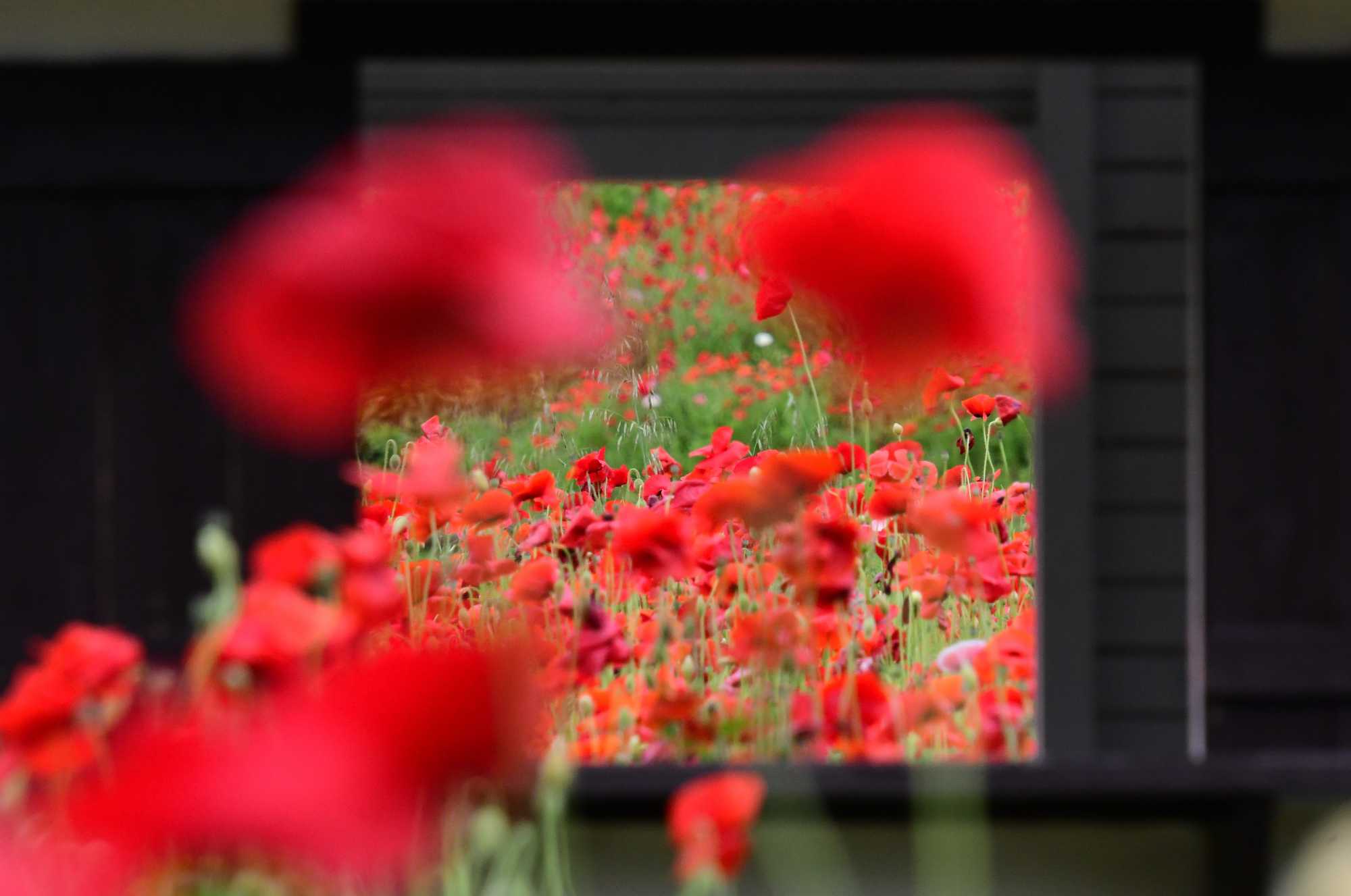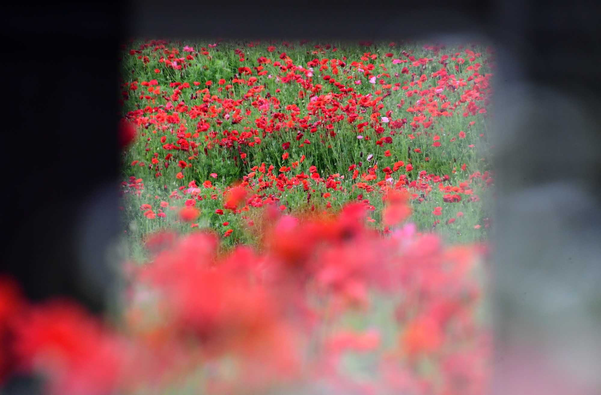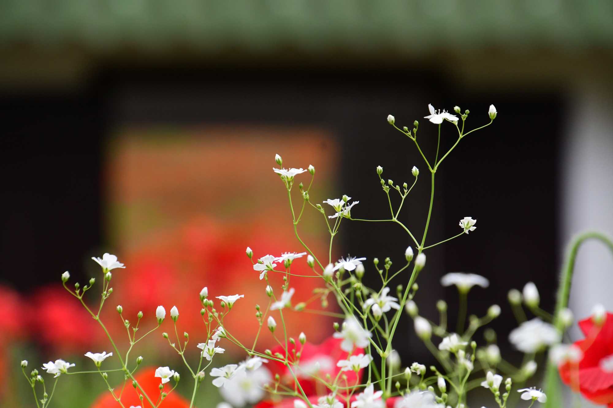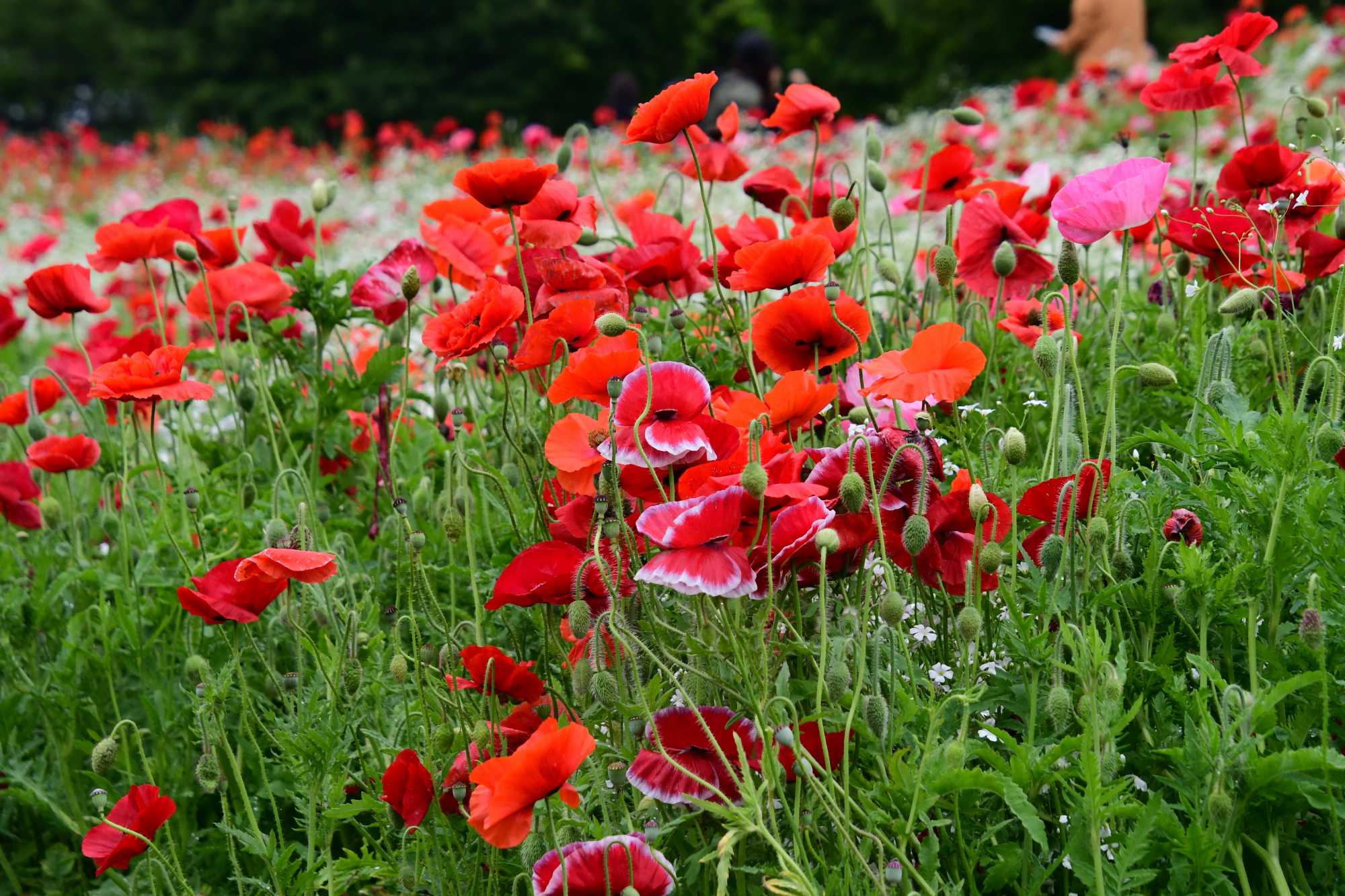 今年の花の丘はシャレーポピーの赤とカスミソウの白です。