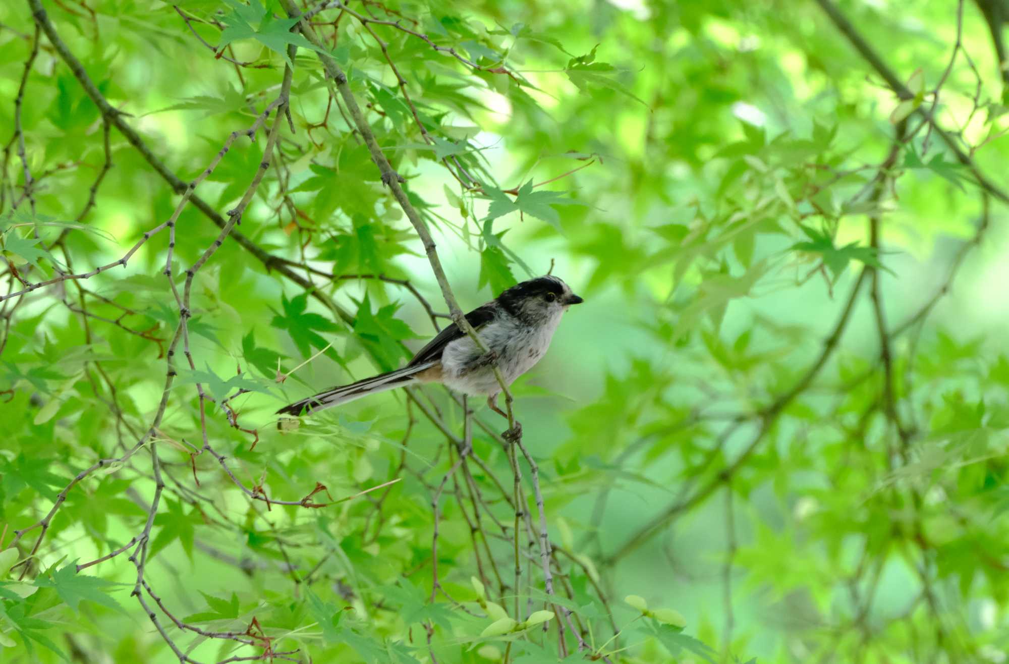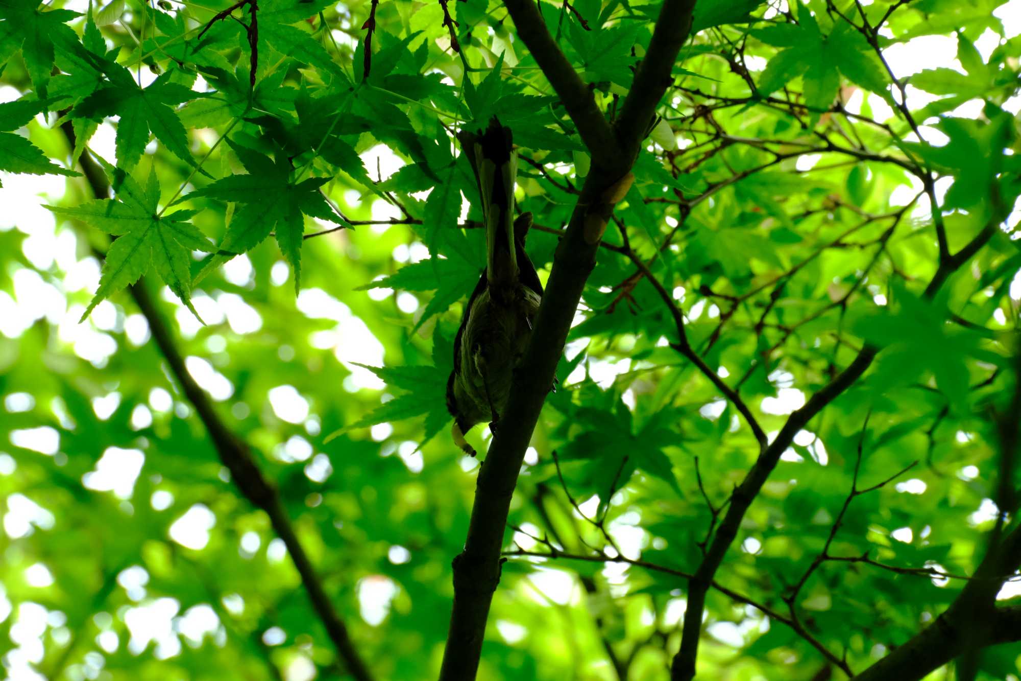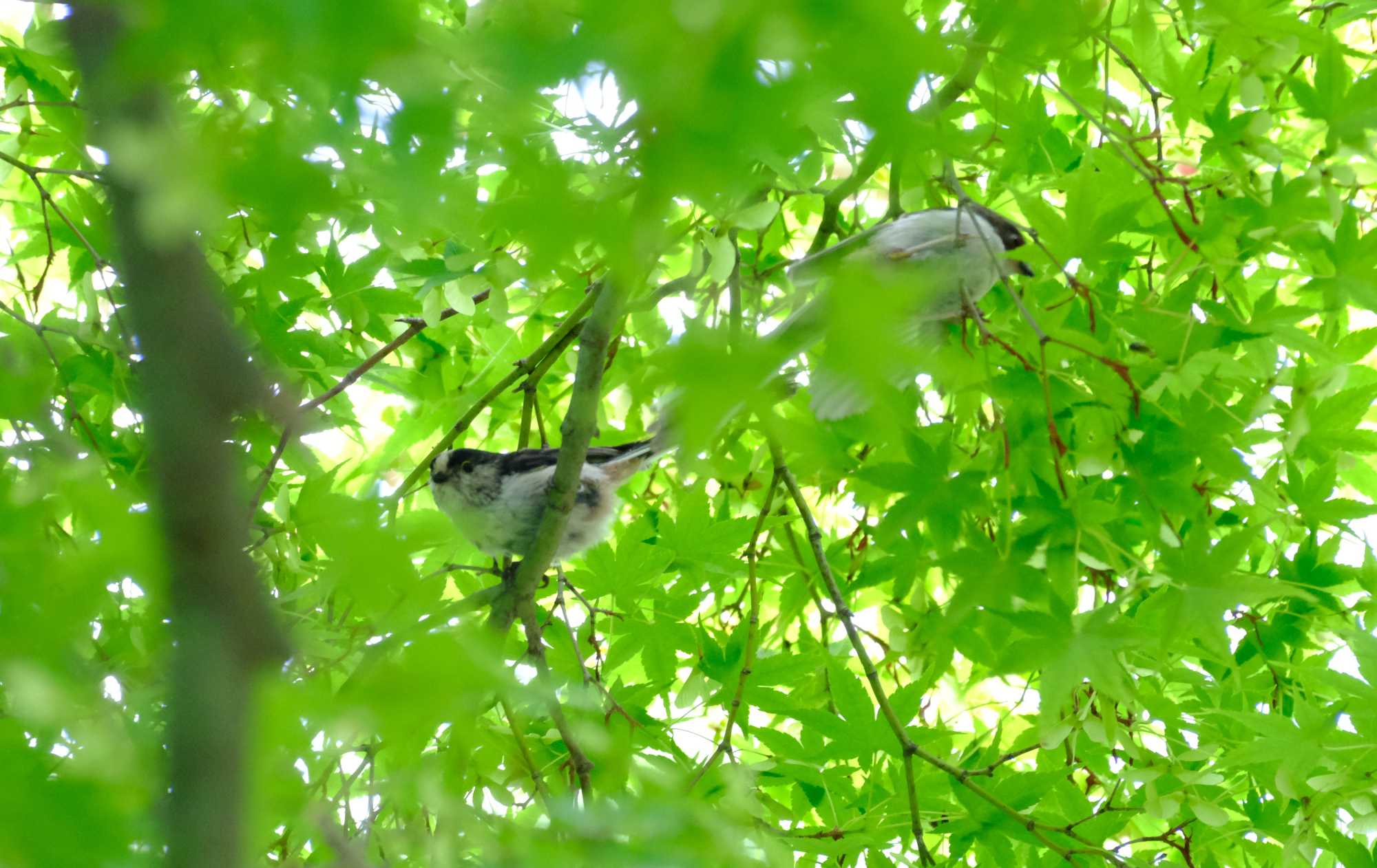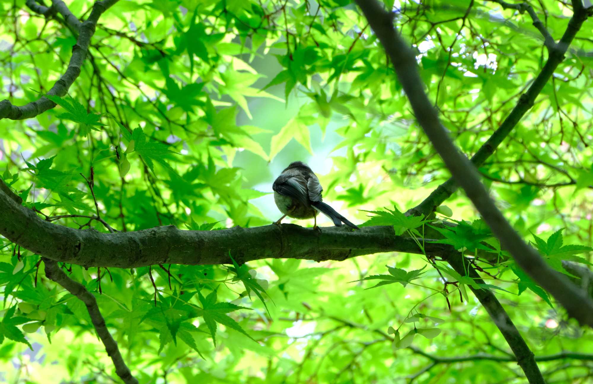 新緑の中にエナガの背中を発見。
