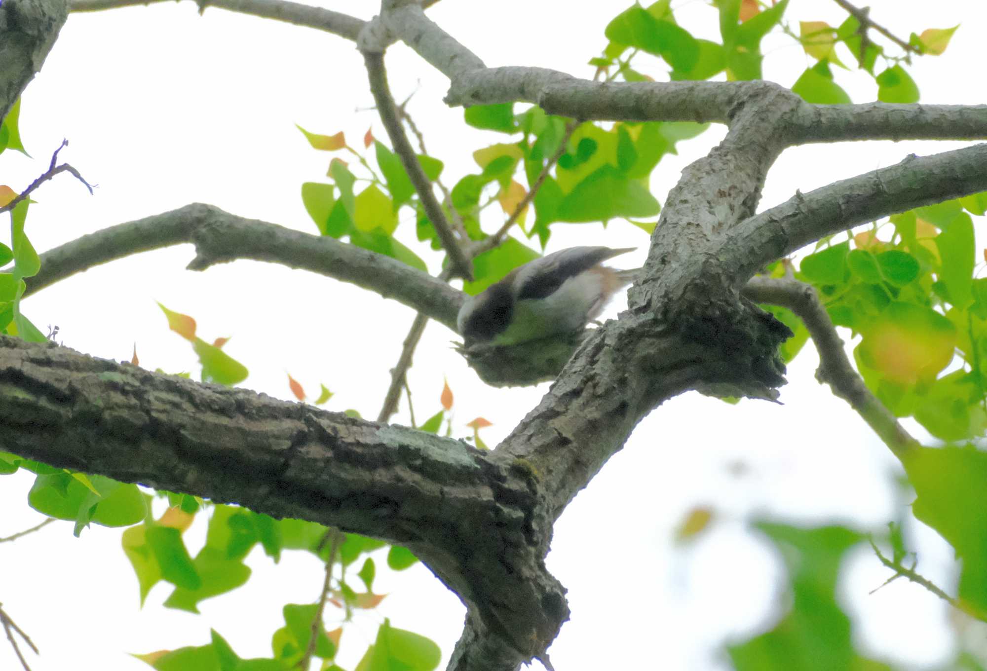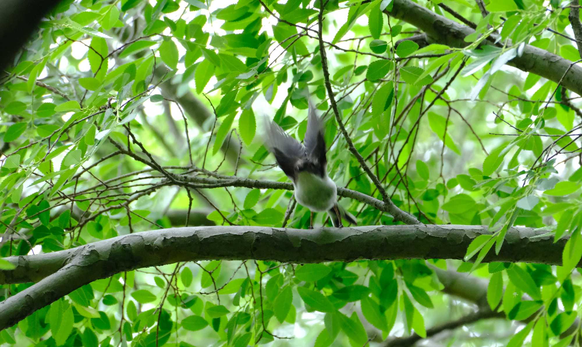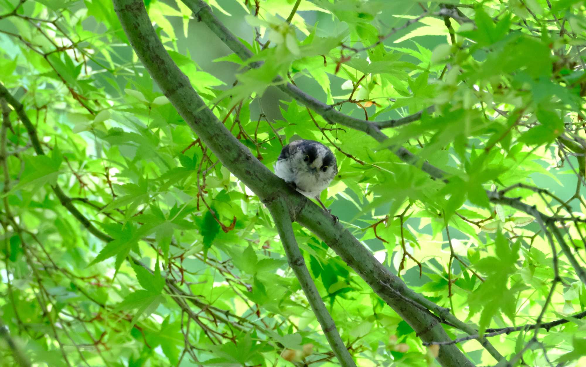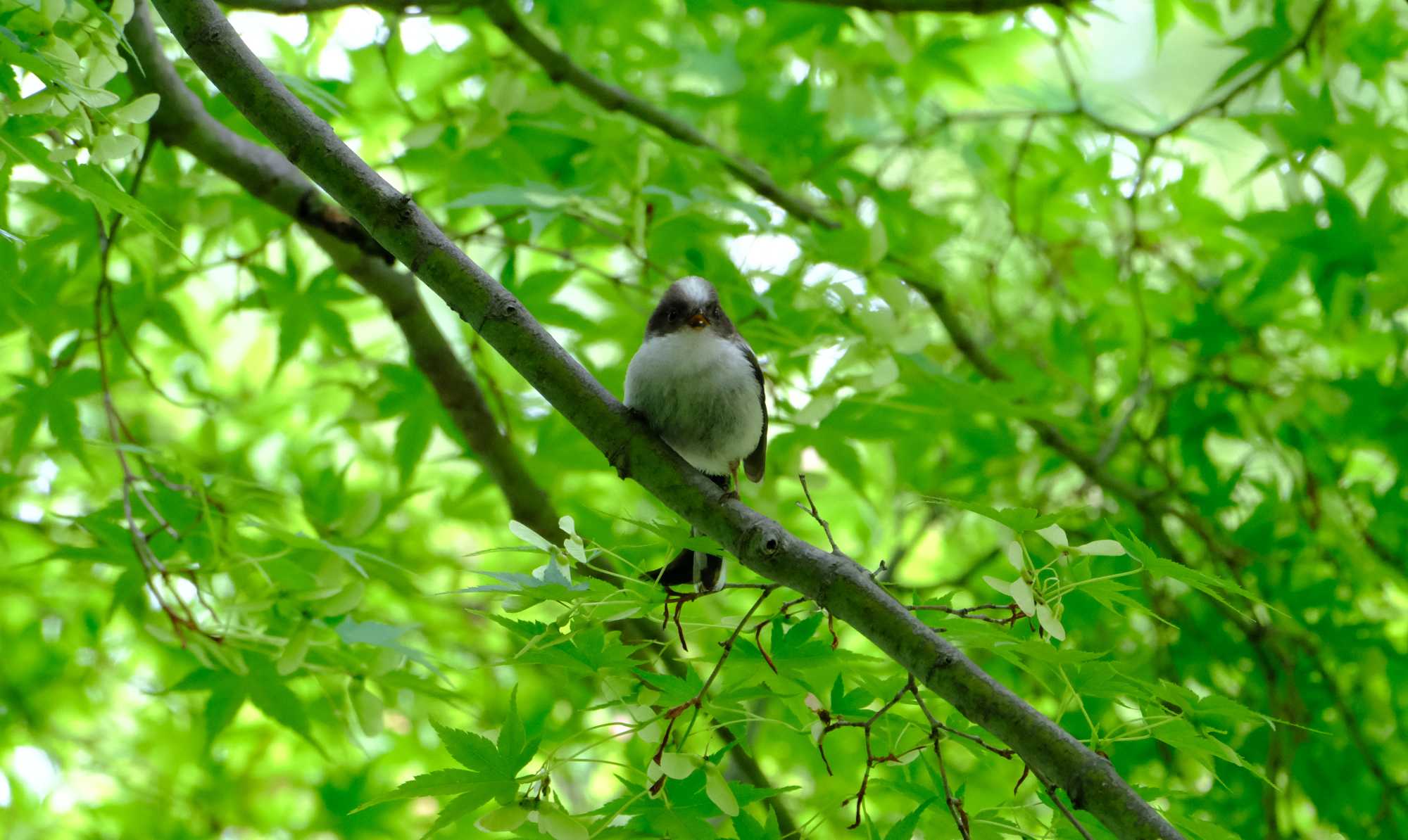 新緑の中にエナガの背中を発見。