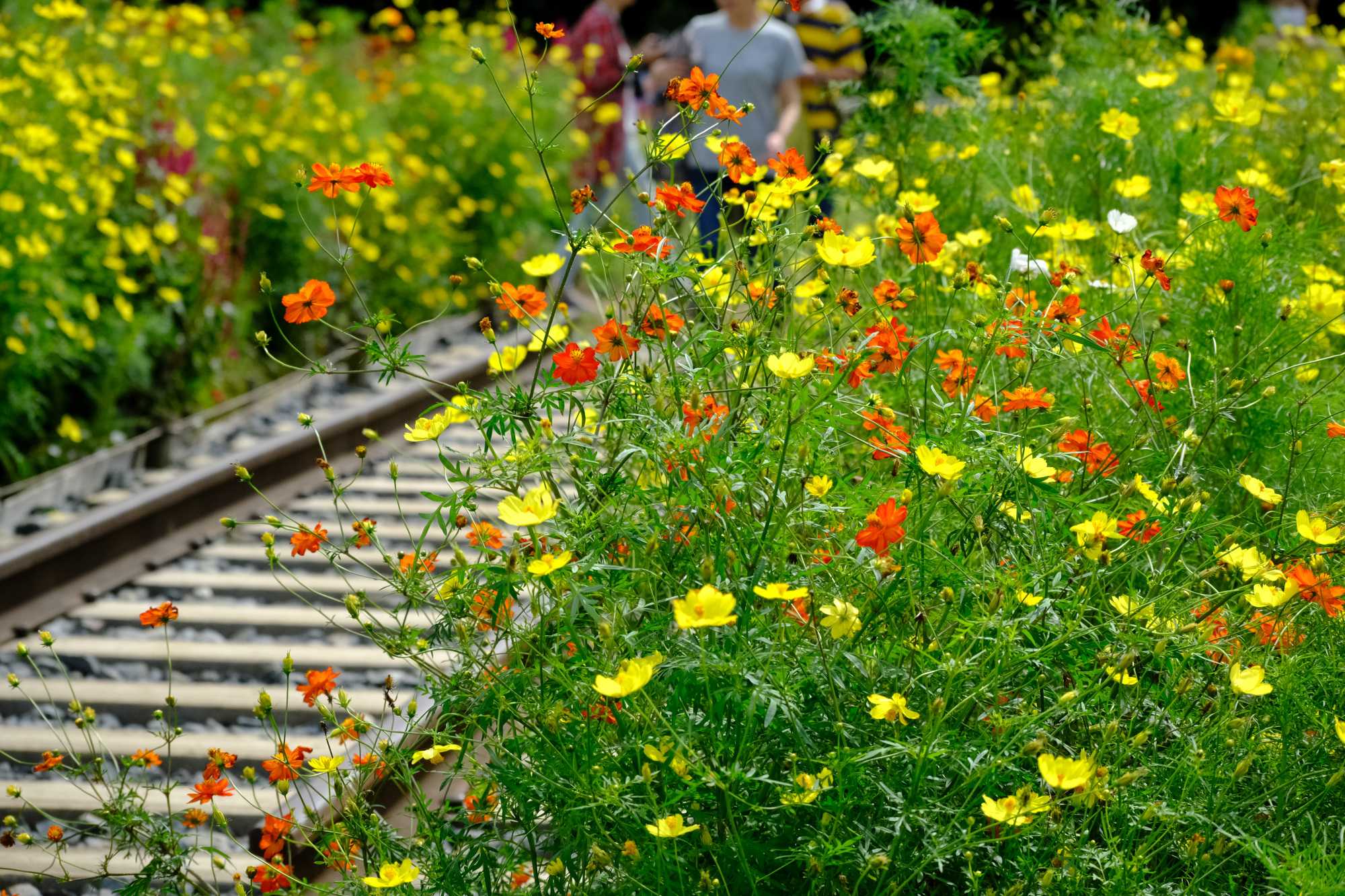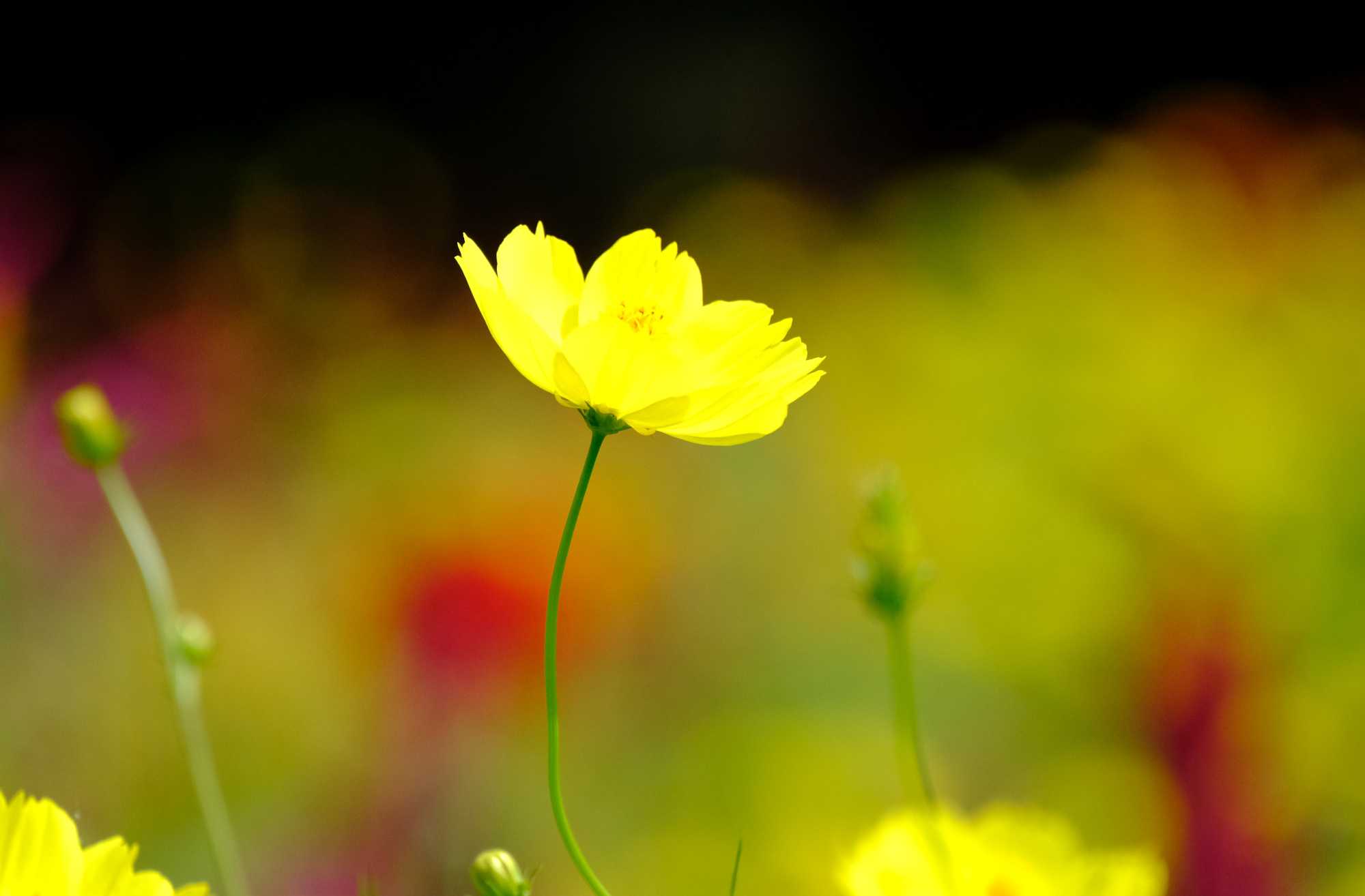 このオレンジのキバナコスモスは「ブライトライト」という名前です。