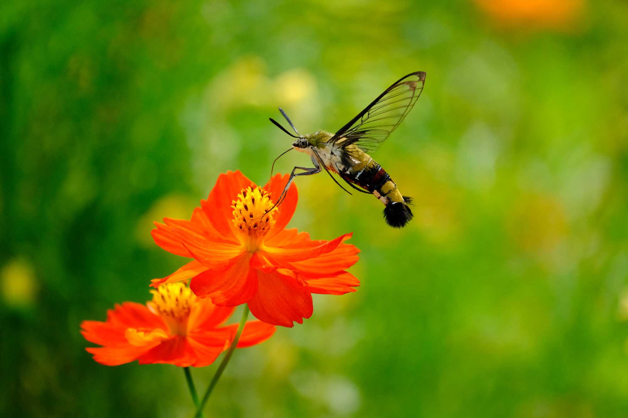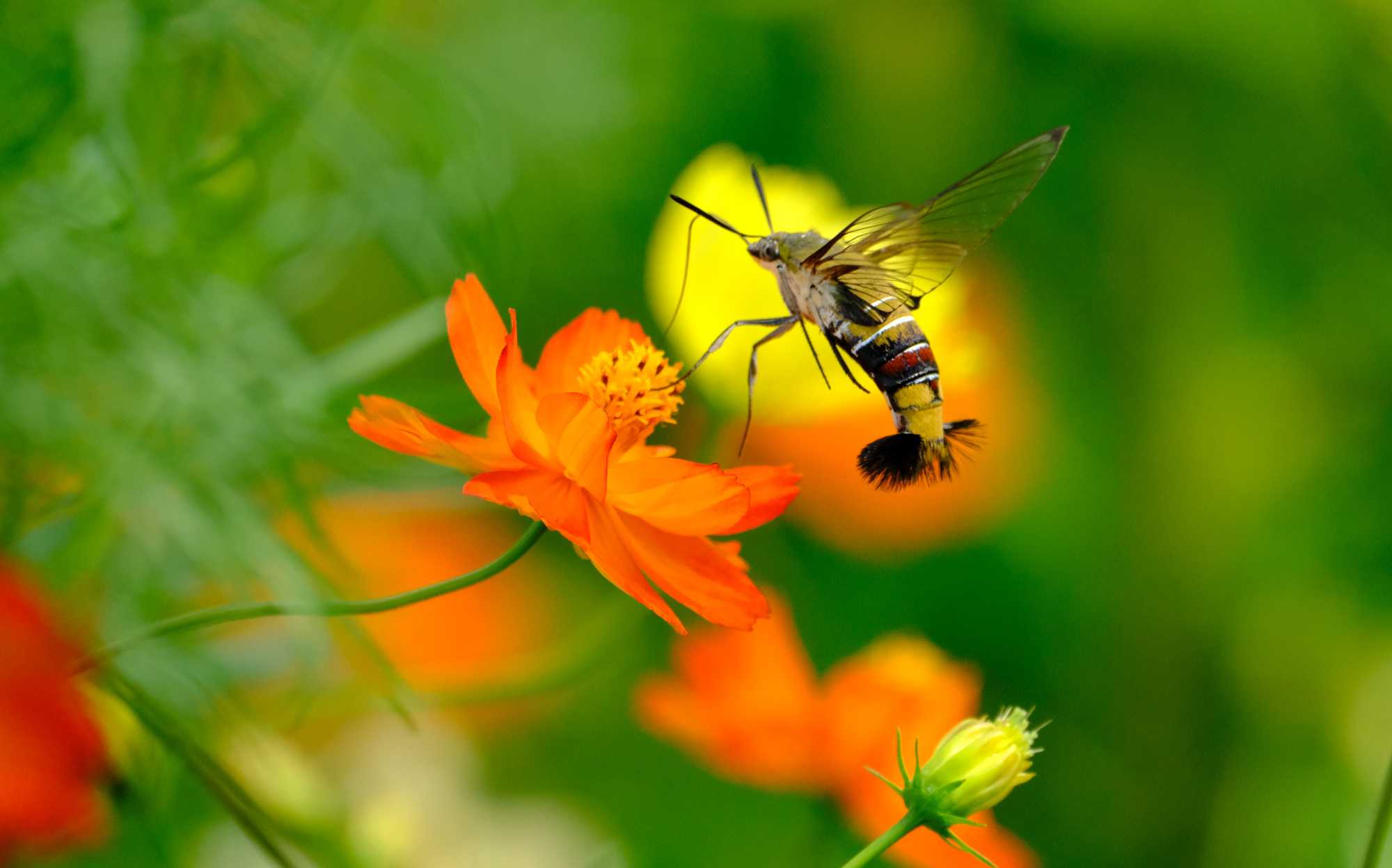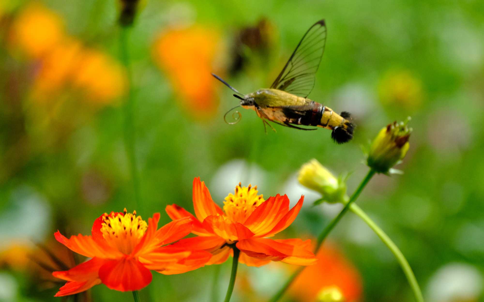 オオスカシバは高速のホバリングをしながら吸蜜。