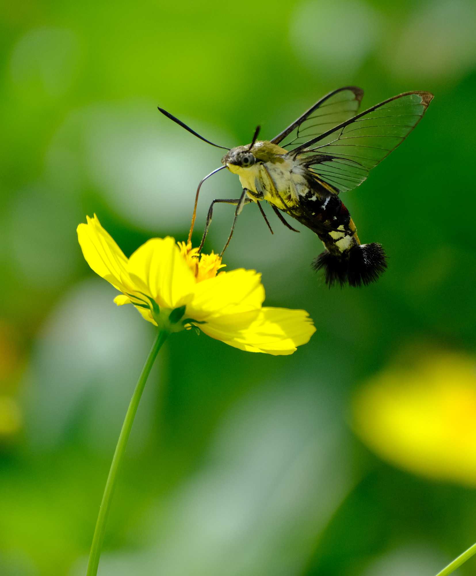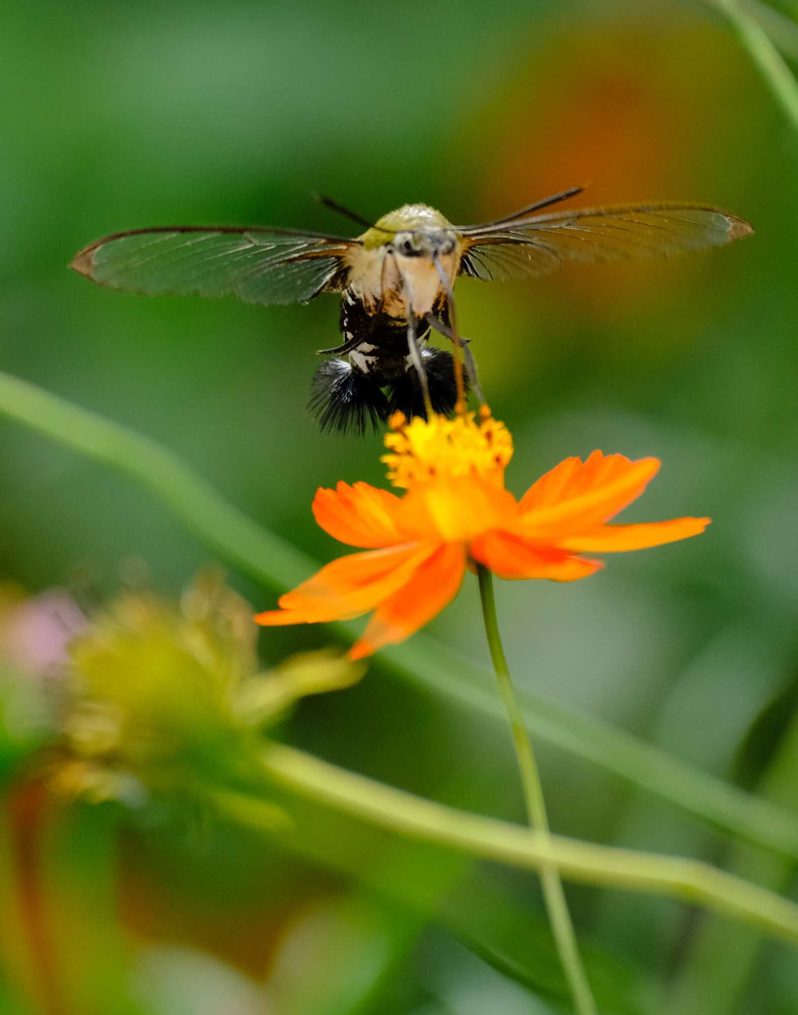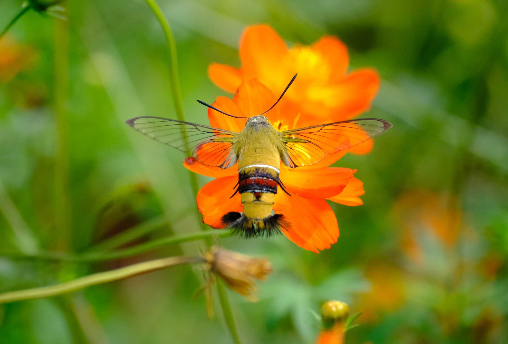 オオスカシバは高速のホバリングをしながら吸蜜。