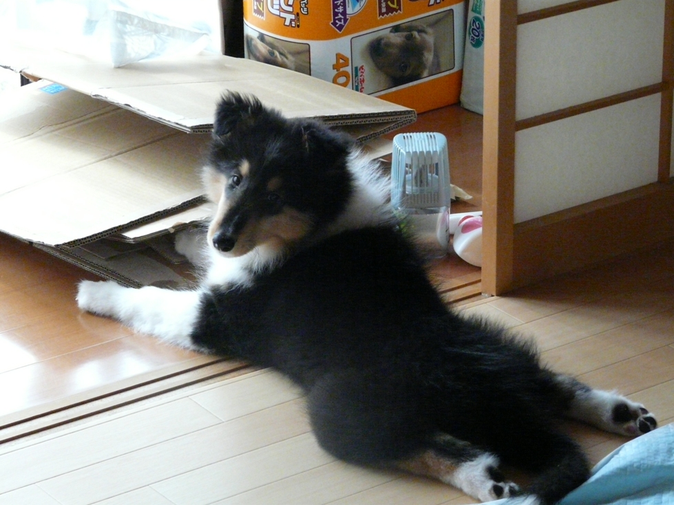 パン教室と子育てに追われ・・・すっかり放置していたこのブログでも最近家族が増えてかわいい彼の生長の様子を書き留めたくて(あっ、パンのことも・・・)ぼちぼち再開してみようかな~~~と思い、本日再スタートですまだまだ手のかかる彼の名は ライト ラフコリーのオスです。現在生後4ヶ月、体重14キロ!どこまで大きくなってくれるか楽しみです「み~た~な~~~」我が家に来たばかりの頃の彼はダンボールをガジガジするのが大好きでした。「ぐ~~~~~ぐぐぐ~~~」最近はいびきをかきながら、大胆なポーズで寝るようになりました。生後4ヶ月にしてなんだか貫禄が出てきたような・・・。明日はどんな笑いを我が家に巻き起こしてくれるか楽しみです