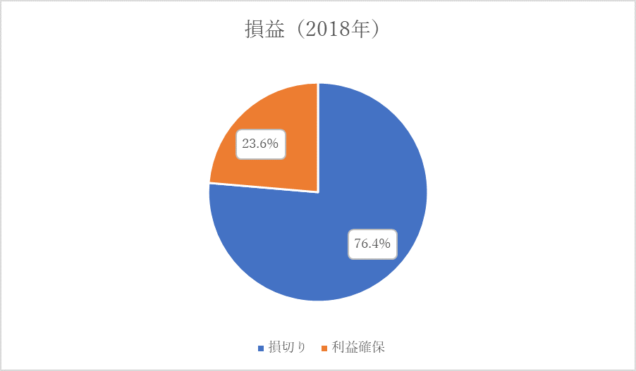 2018年11月に、楽天証券で国内株式を始めたばかりの初心者です。投資歴、半年。昨年、損失を出しました。今年は現時点で、利益を出せています。どうして、損失を出してしまったのか。「休むも相場」を選んで、その理由が分かりました。上のグラフを見て分かる通り損失額が利益額を上回っていたためです(データは損益の件数ではなく金額)。しかも損切りは買付額の-0.7%~-33.8%で利益確保は+0.05%~+5.9%で実施していました。遅すぎる損切りと早すぎる利益確保が、損大利小を招いていたのです。一方、下のグラフが今年の初頭から5月21日までの損益状況となります。損切りは買付額の-0.2%~-18.1%で利益確保は+0.2%~+12.3%で実施していました。昨年よりは損小利大に近づきましたがタイミングでは、損中利中といったところです。また、順張りでの高値掴み、逆張りでの底割れが目立ちました。ナンピン買いもしていました。これらは今後の課題ですが、塩漬け株を作らなかったことだけは評価できるかなと思います。今回の総括を今後の戦略に生かしていくつもりです。このような仕切り直しのためにも「休むも相場」は必要なのだな、と実感しました。(多くの方が言われていることですが)*****株式投資これだけはやってはいけない (日経ビジネス人文庫) [ 東保裕之 ]*****マンガでわかる株式投資!女子高生株塾 マンガでわかる株式投資! [ ホイチョイ・プロダクション ]*****一番売れてる株の雑誌ダイヤモンドザイが作った!チャートで稼ぐ「株」入門! 必勝sexyボリンジャー投資法のすべて [ Diamond ZAi編集部 ]*****会社四季報の達人が教える10倍株・100倍株の探し方 [ 渡部 清二 ]