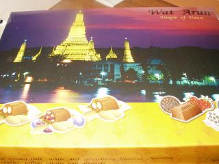 タイに転勤になったいとこが帰ってきました↓おみやげです。HERSHY’Sと書いてあるがほんとかな??タイやで中に金色の象さんが入ってましたWat Arumって書いてあるけど、なんだろね。よっしぃ教えて~それから、職場の上司のMさんにお願いして買ってきてもらいました。霧笛楼の横浜煉瓦中はこんな感じかなり濃厚です。一人1個はムリみんなで分けて食べましょう1個210円です。最後はデザインがかわいいと思いません?ショコラショコラという名です。サンエバーの商品です。セレナの1階にあるコーヒーショップです。↓これめっちゃおいしいよ~チリプラウンロール