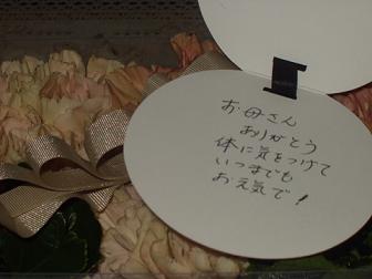 今年の母の日はうちのおばあちゃんはゴキゲンでした。父と母からお花が届きました。(一緒に住んでるんだけどね)メッセージカードつき。Mプルミエの花屋さんができて、そこで頼みました。阪急に期間限定ショップができてて、今度は御堂筋にOPENするそうですよちなみに私はおばあちゃんにパジャマをあげました。一瞬ブラウスだと思って喜んでいたのですが、パジャマだと知ってちょっとがっくりしてましたみんなはどんな母の日のプレゼントしたの~祇園・ボローニャ↑今「うたばん」で倖田來未が紹介してました。中居くん、タカさん絶賛